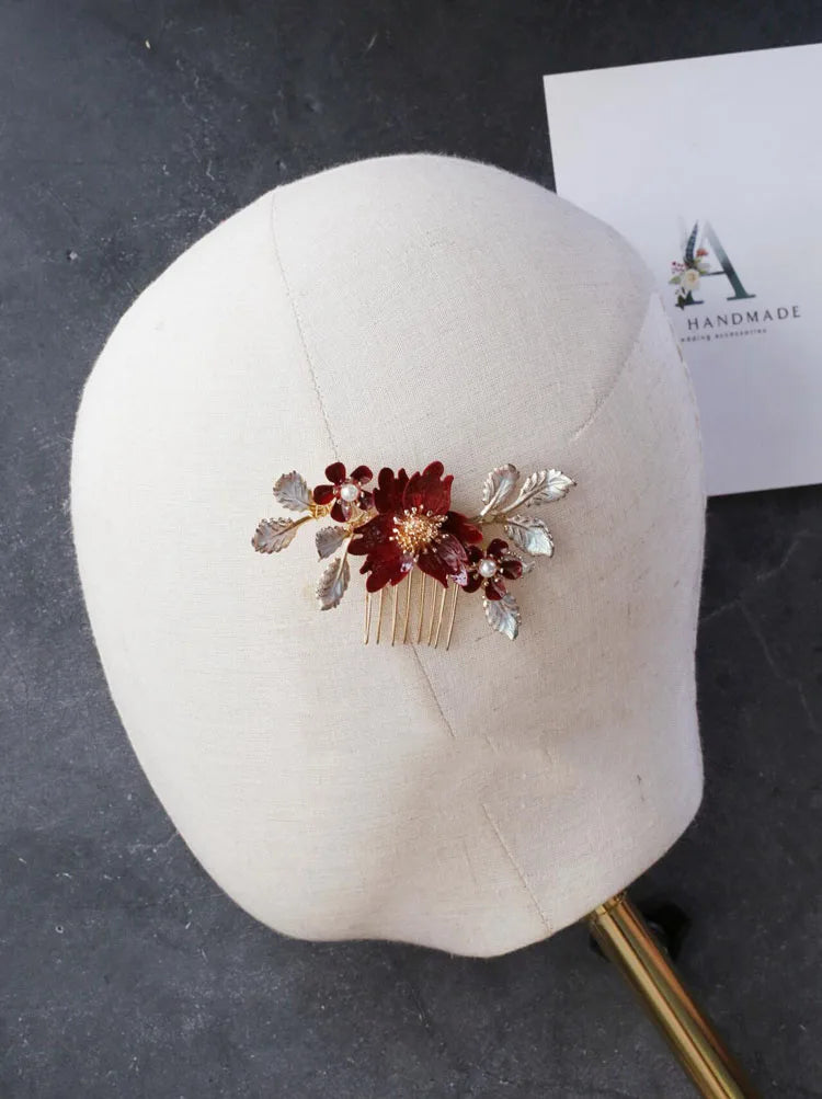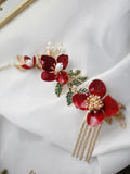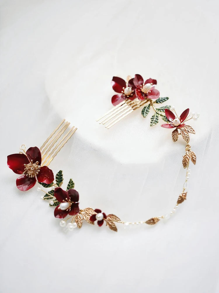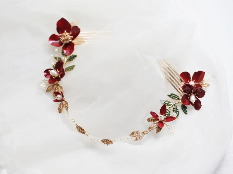 Red Flower Headpieces Headbands Leaf Headdress For Brides Party Dinner Dress Hairbands Wedding Accessories Bridal Hair Jewelry