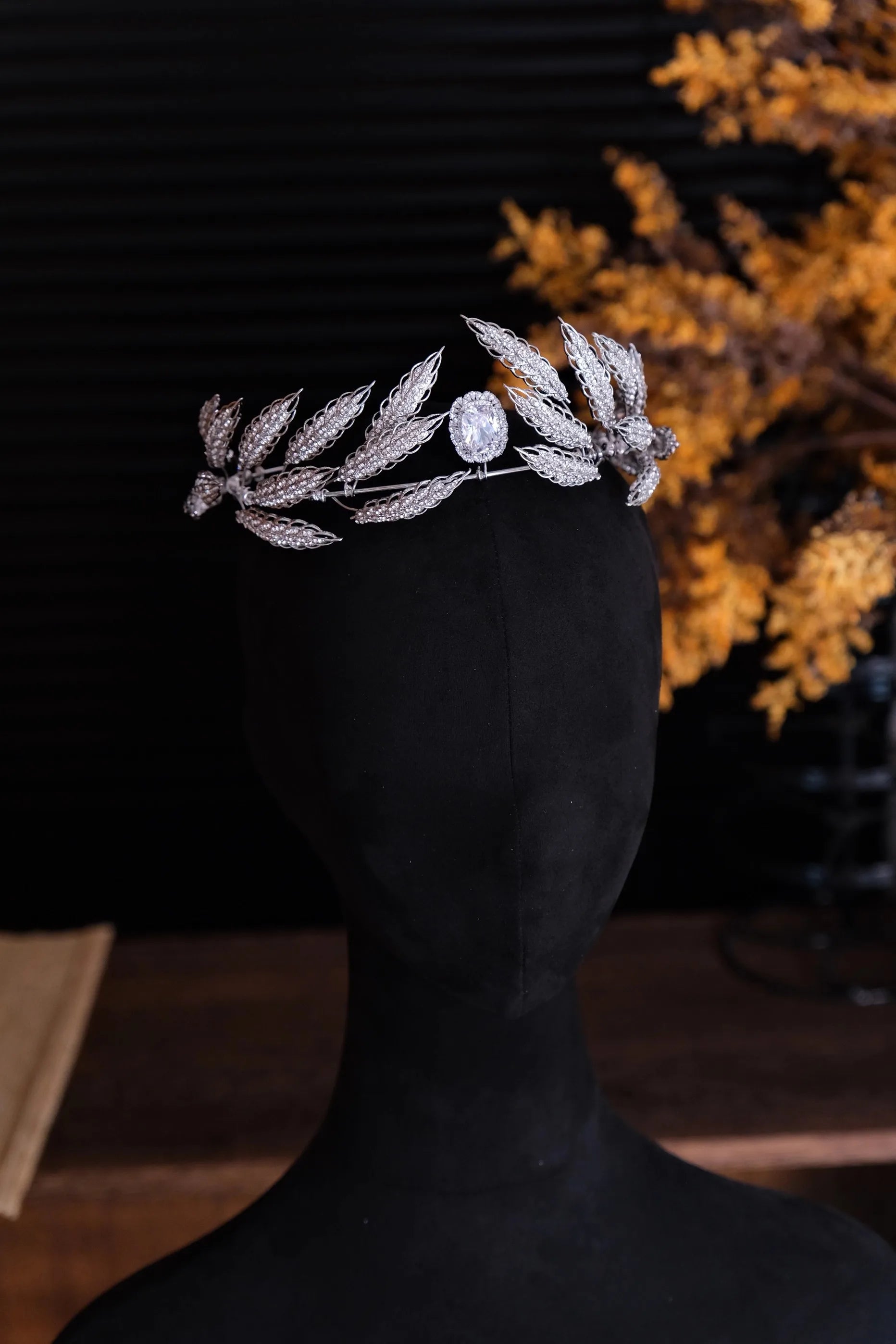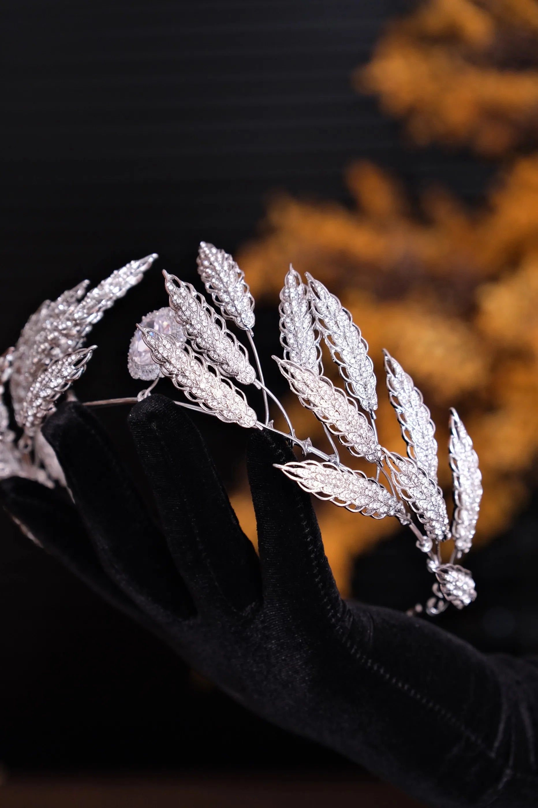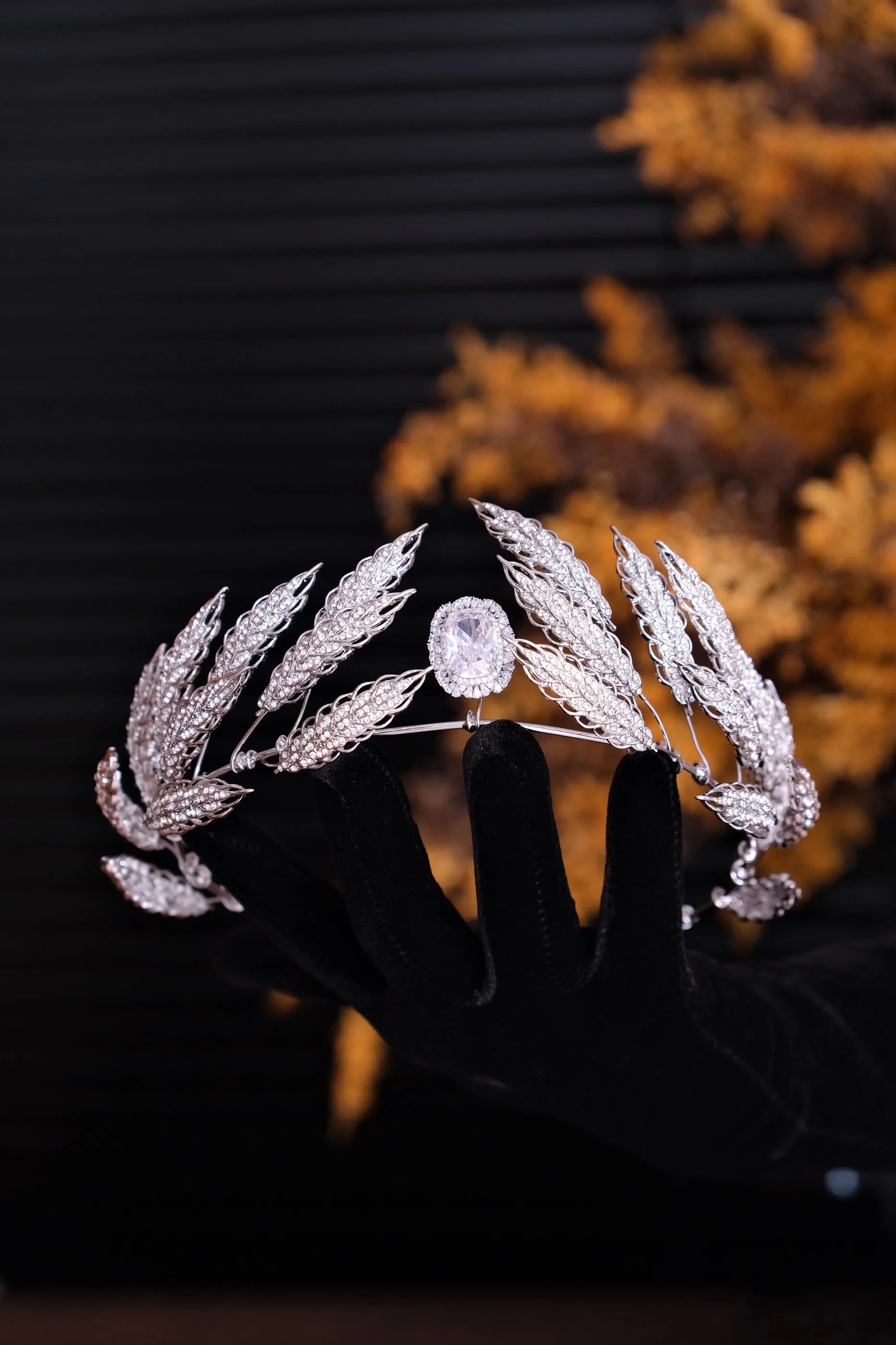 Rhinestones Zircon Tiaras and Crowns Leaf Crystal Diadem Brides Prom Pageant Headband Wedding Accessories Bridal Hair Jewelry