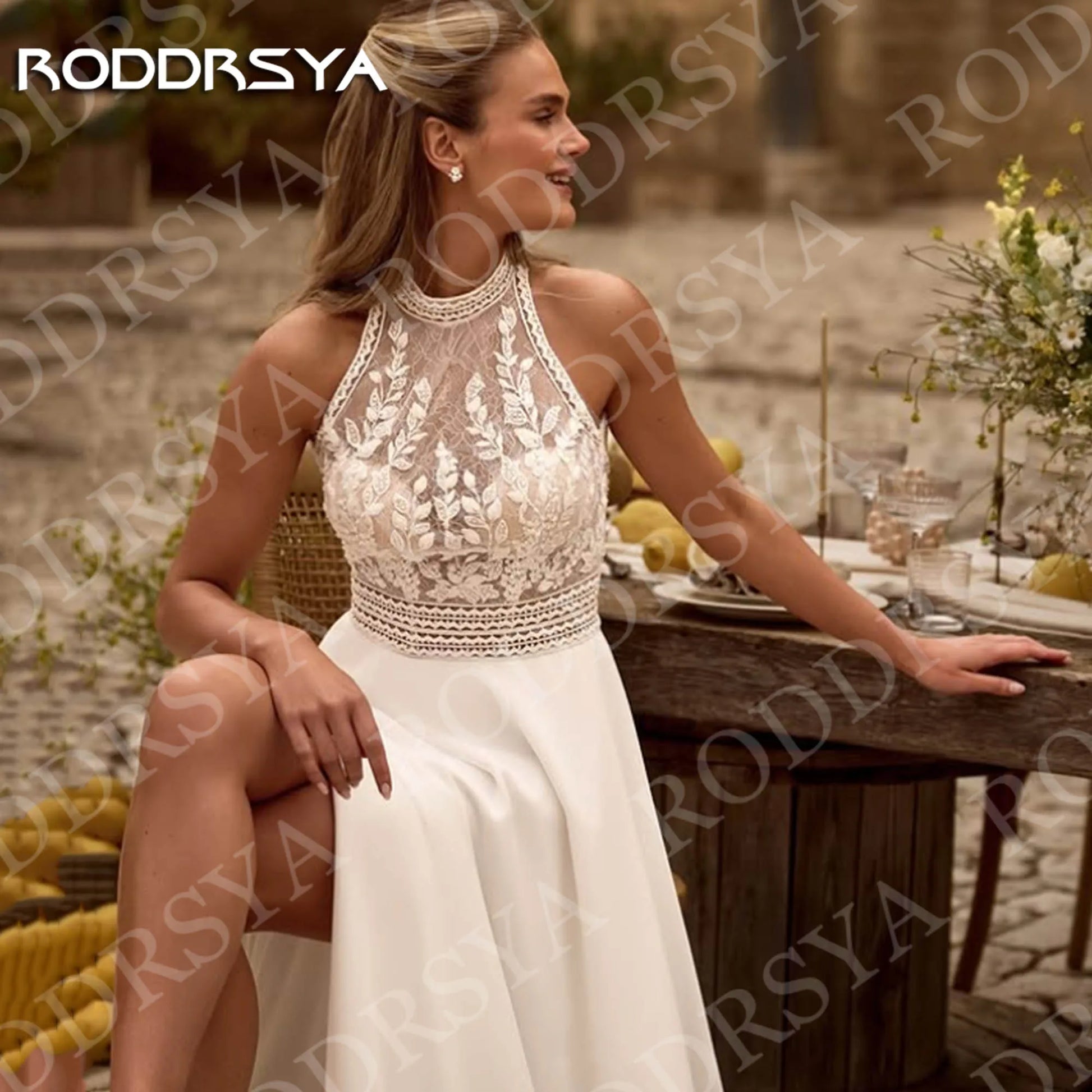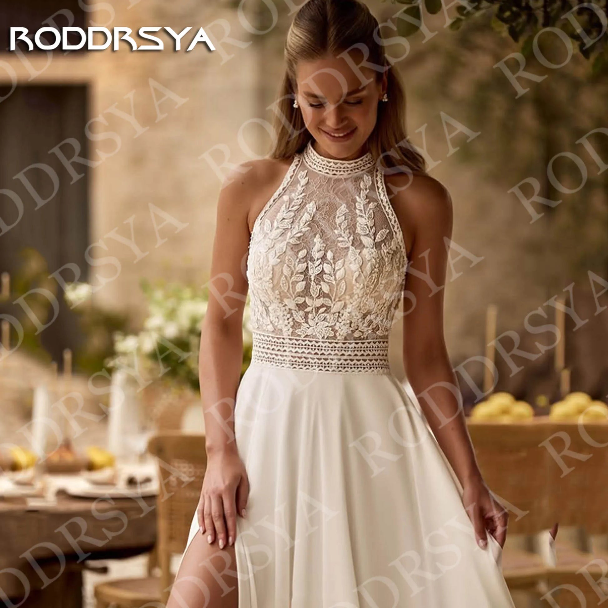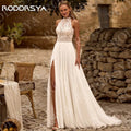 RODDRSYA 2026 Bohemian Wedding Dress Open Back Lace Halter Neck High Slit A Line Chiffon Bridal Dresses Customized vestido novia