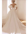 Satin A Line Wedding Dresses For Women Elegant Off Shoulder Bride Gowns Pleats Bridal Dress Pockets Customized Vestido De Novia