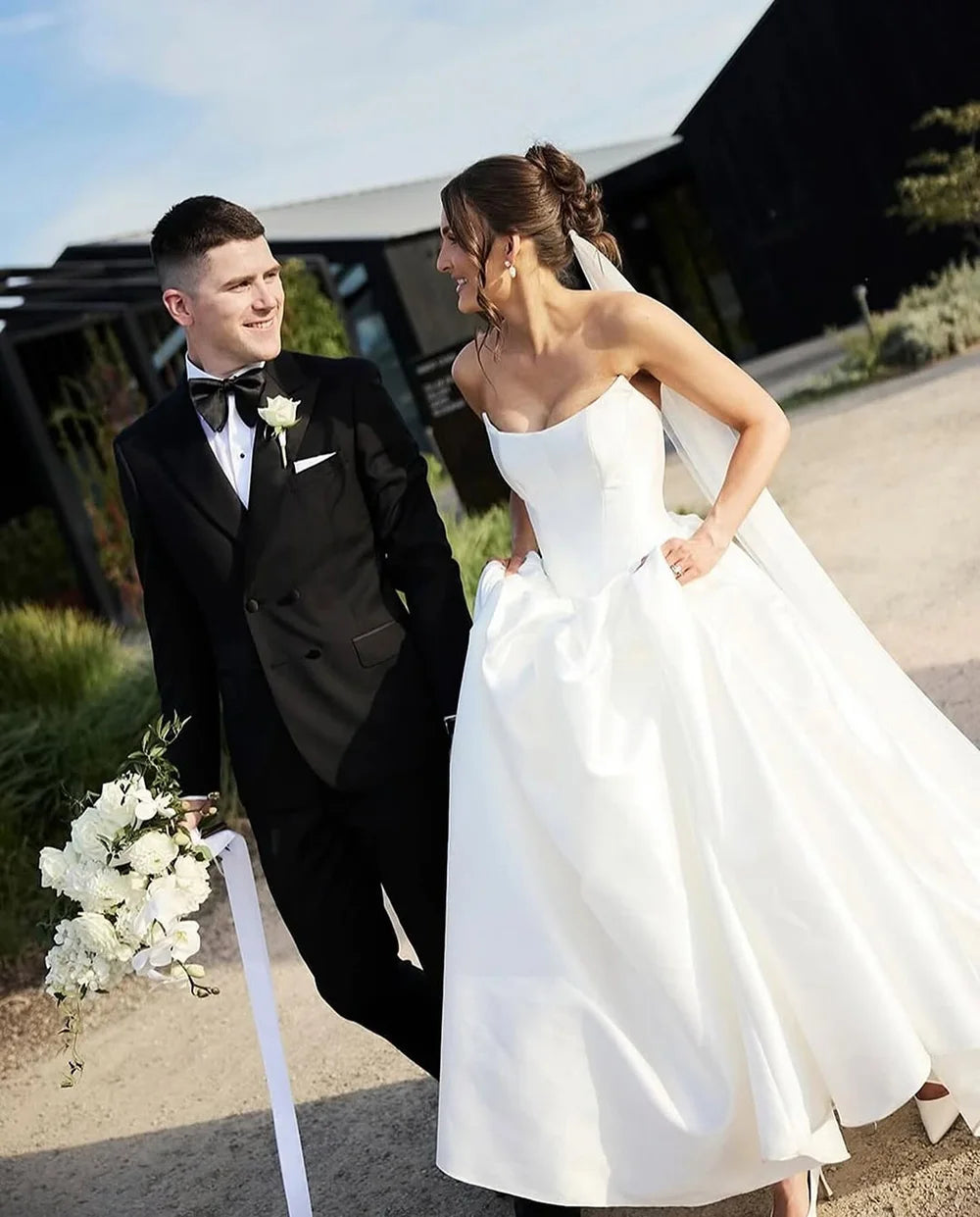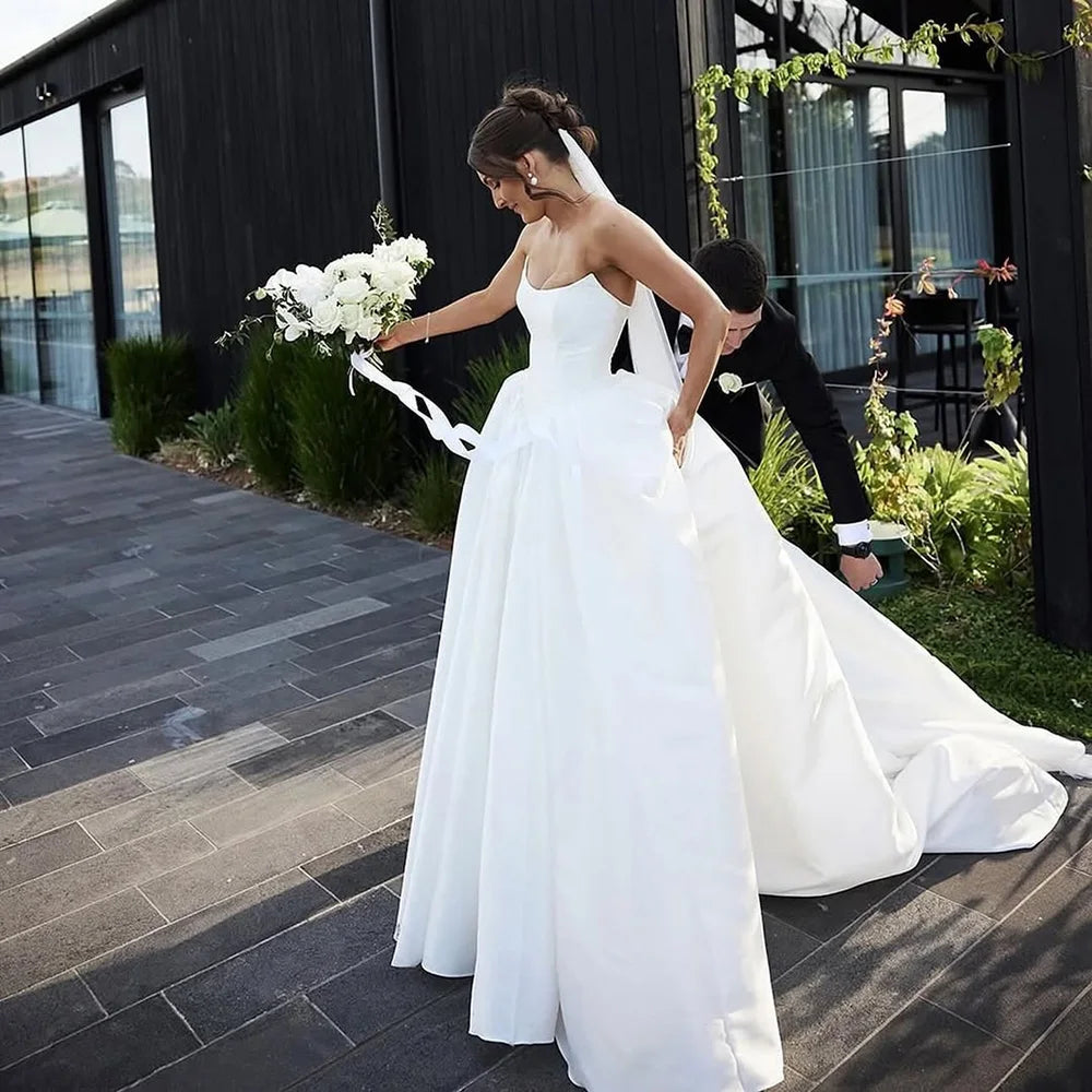 Satin Wedding Dresses For Bride 2025 Modern Corset Strapless Long Brides Gown Luxury A-line Formal Bridal Dress Customized