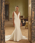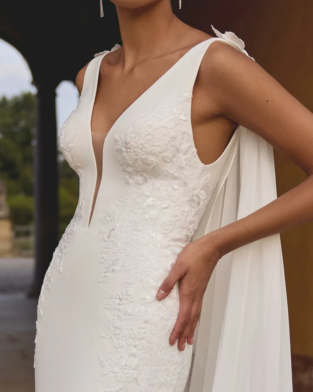 Sexy Deep V Neck Wedding Dresses For Women 2025 Customized Lace Apliques Bride Dress Cape Backless Mermaid Bridal Gown