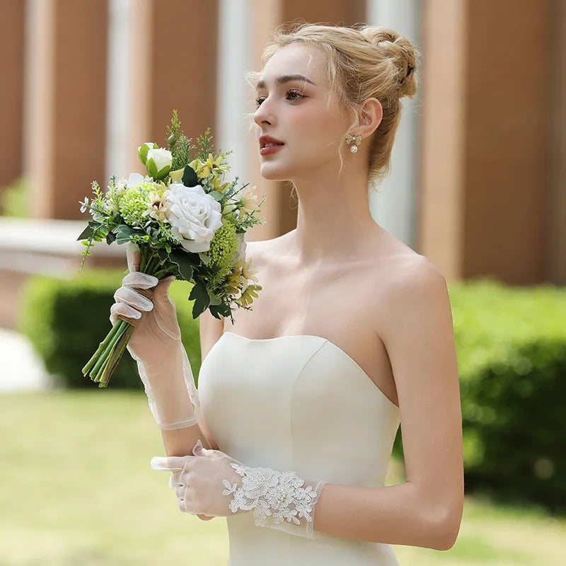Short Bridal Gloves Pearl Wristband Wedding Glove For Women Girl Gift Party Evening Dress Jewelry Bride Accessories