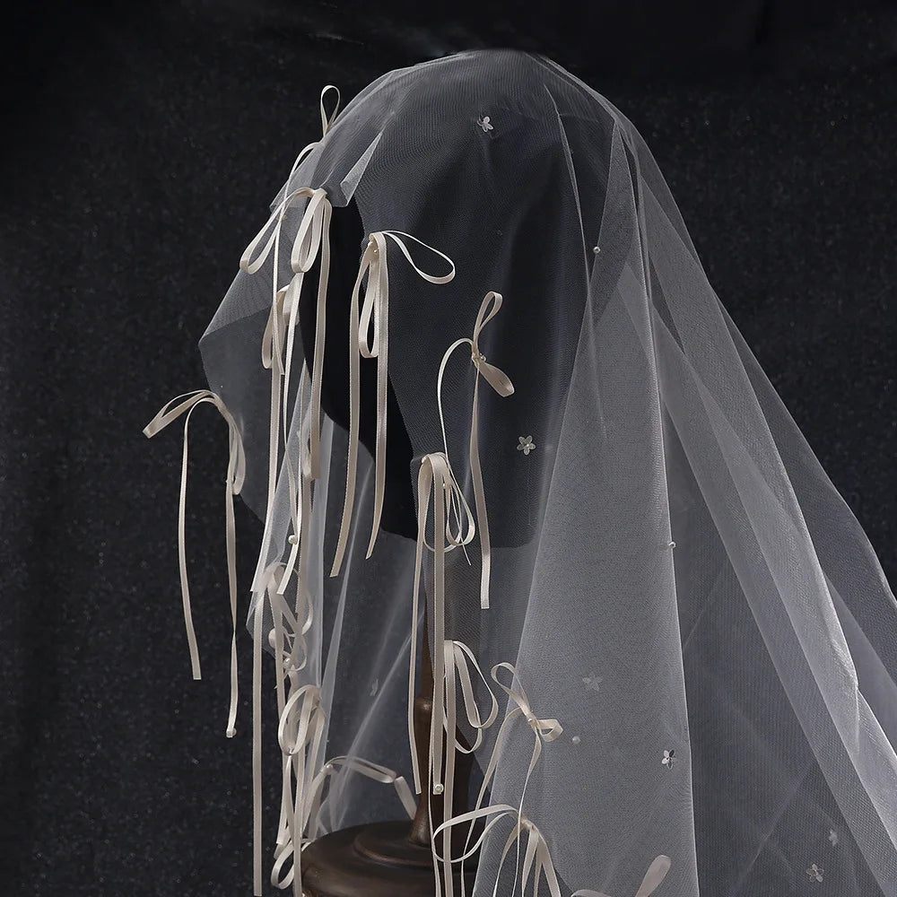 Short Bridal Veil Bowknot Flower Wedding Veils For Evening Dinner Party Dress Women Gift Hair Accessories Brides Jewelry