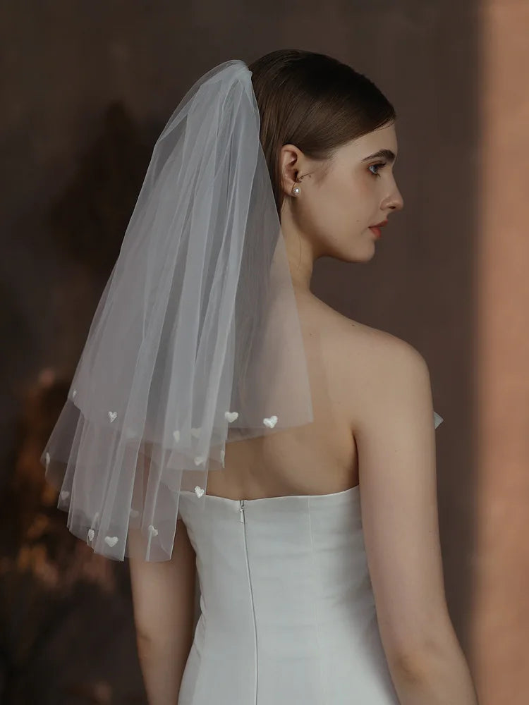 Short Heart Bridal Veil White Lace Wedding Veils For Evening Dinner Party Dress Women Gift Hair Accessories Brides Jewelry