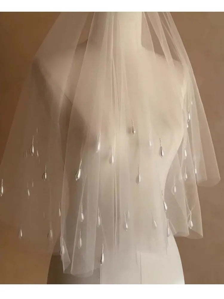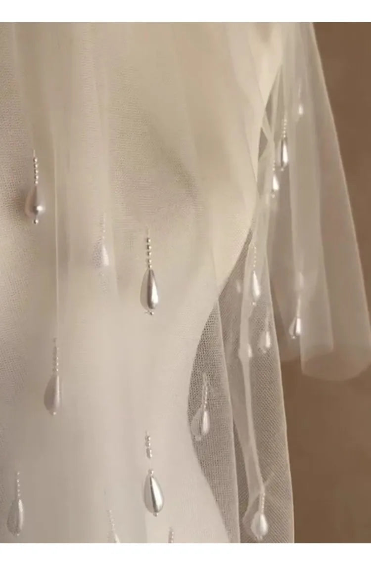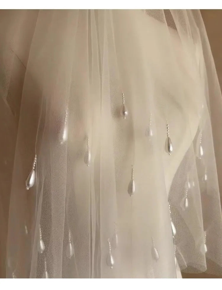 Short Pearl Beads Bridal Veil White Wedding Veils For Evening Dinner Party Dress Women Gift Hair Accessories Brides Jewelry