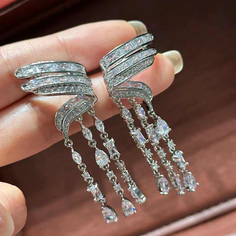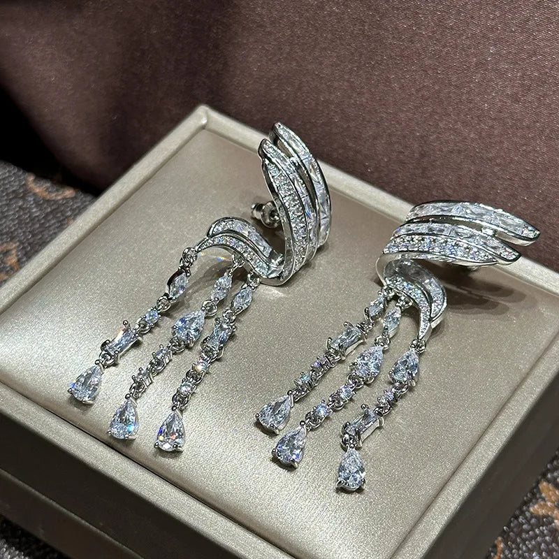 Silver Color CZ Zircon Bridal Earrings Cubic Zirconia Wedding Earring For Women Bride Accessories Dinner Party Dress Jewelry