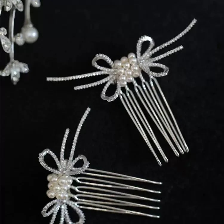 Silver Color Hair Pin Clip Pearl Crystal Head Piece For Bride Bridesmaids Hairpin Earrings Bridal Jewelry Wedding Accessories
