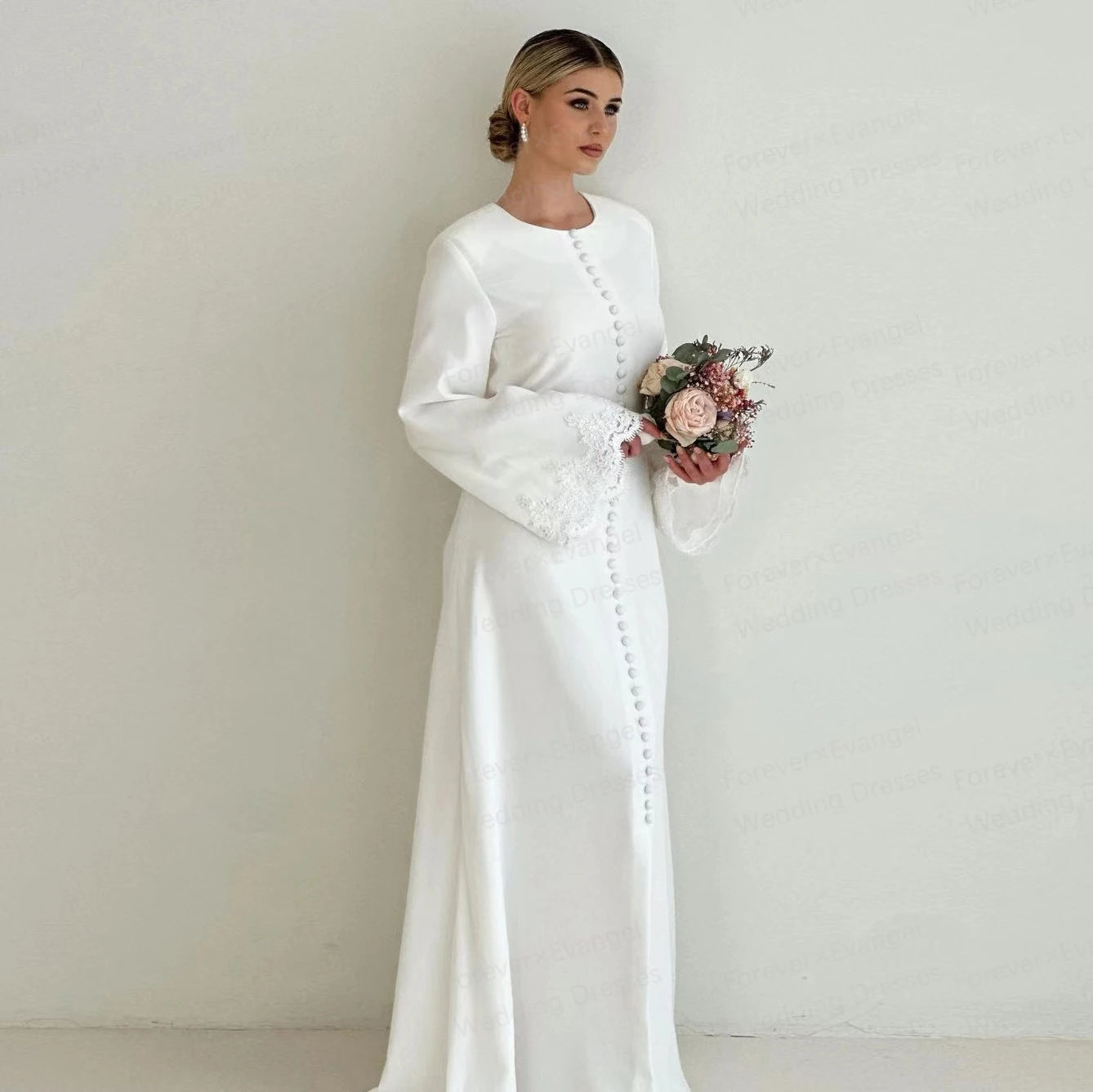 Simple Muslim Wedding Dresses Woman's Mermaid Appliques Button Formal Long Sleeve Split Bride Gowns 2026 Customized فستان