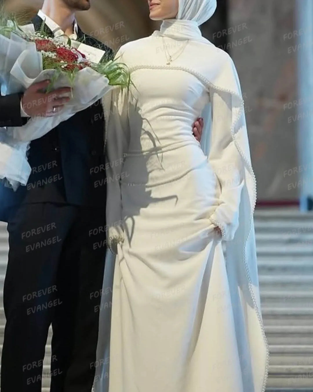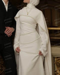 Simple Pearls Wedding Dresses Woman's Mermaid Muslim Formal Long Sleeve Ruffles Bride Gowns Customized Satin Robe De Mariée 2026