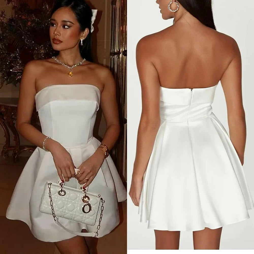 Simple Stain Wedding Dresses Elegant Strapless Short Bridal Gown Pleat Sleeveless Sexy Mini Wedding Party Dress Customized