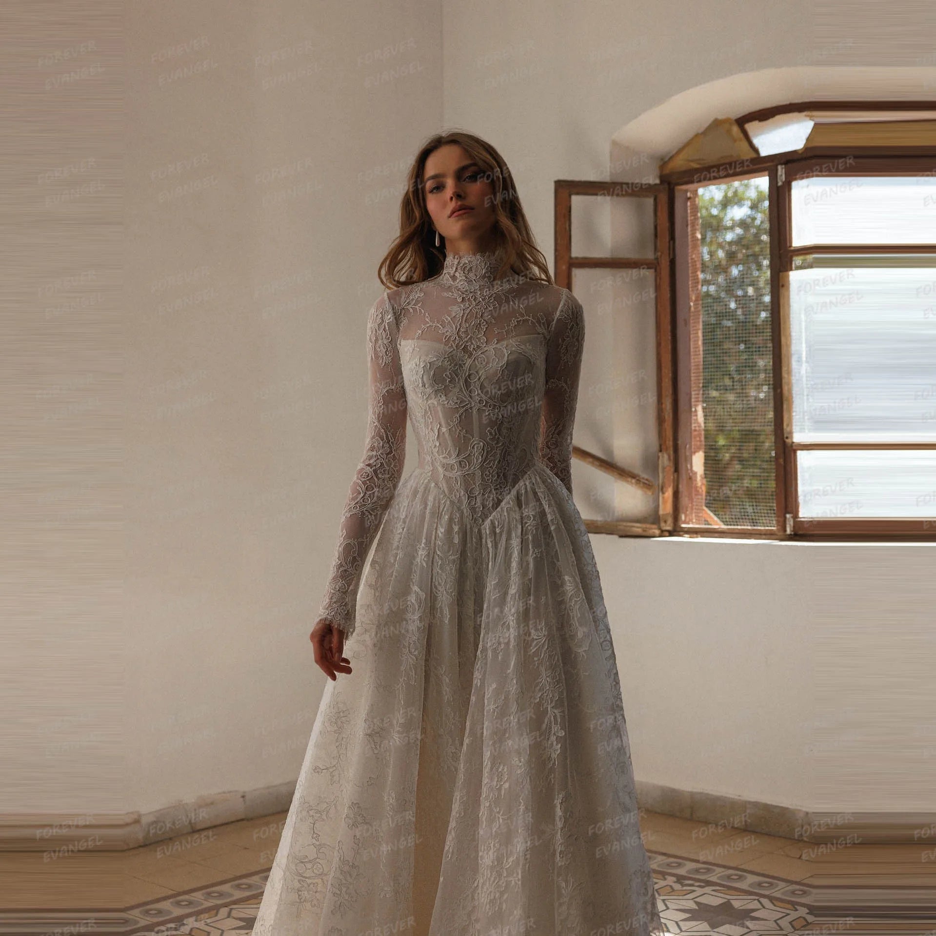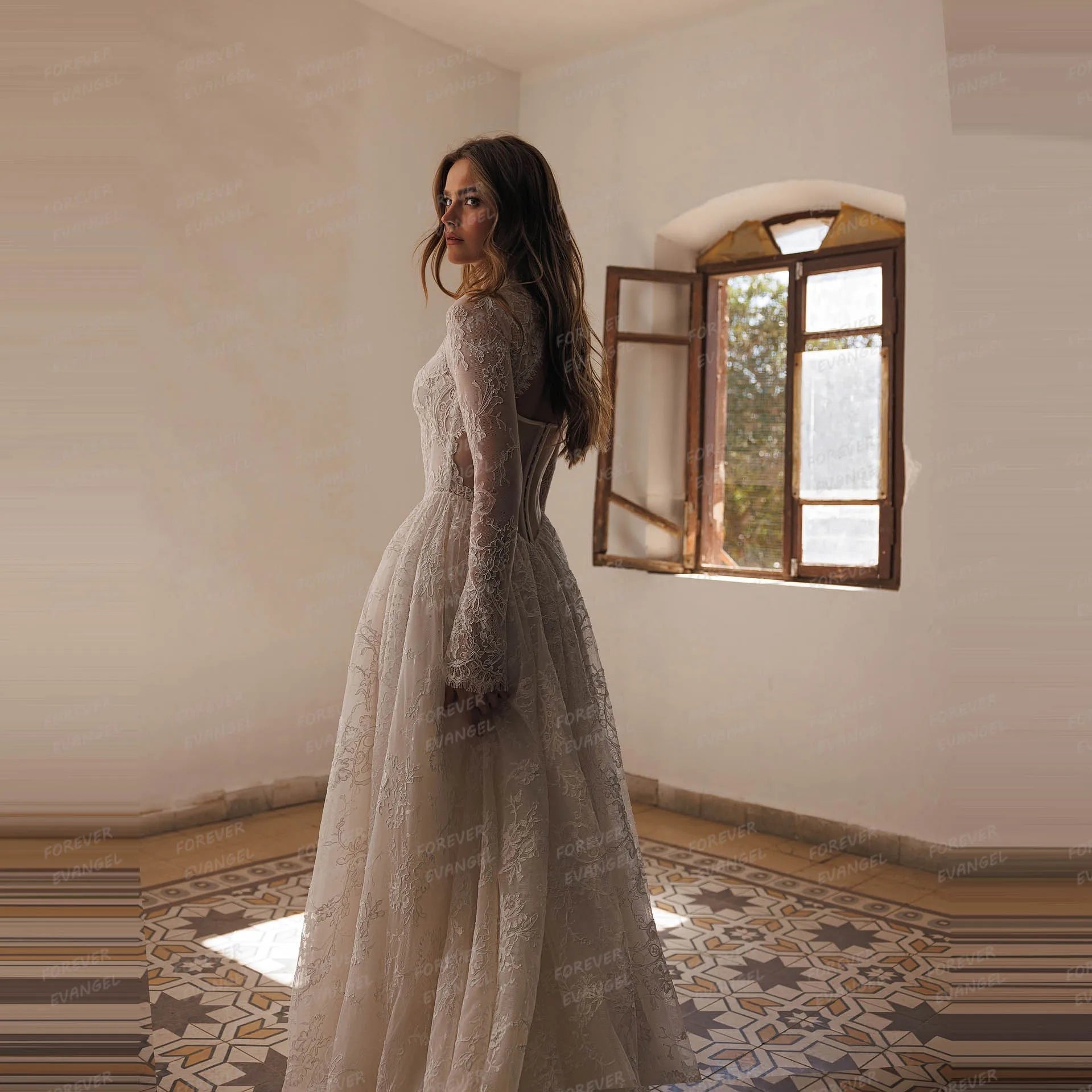 Simple Wedding Dresses A Line Woman's Sexy Lace Shiny Long Sleeve Bride Gowns Formal Appliques 2025 Customized Vestidos De Novia