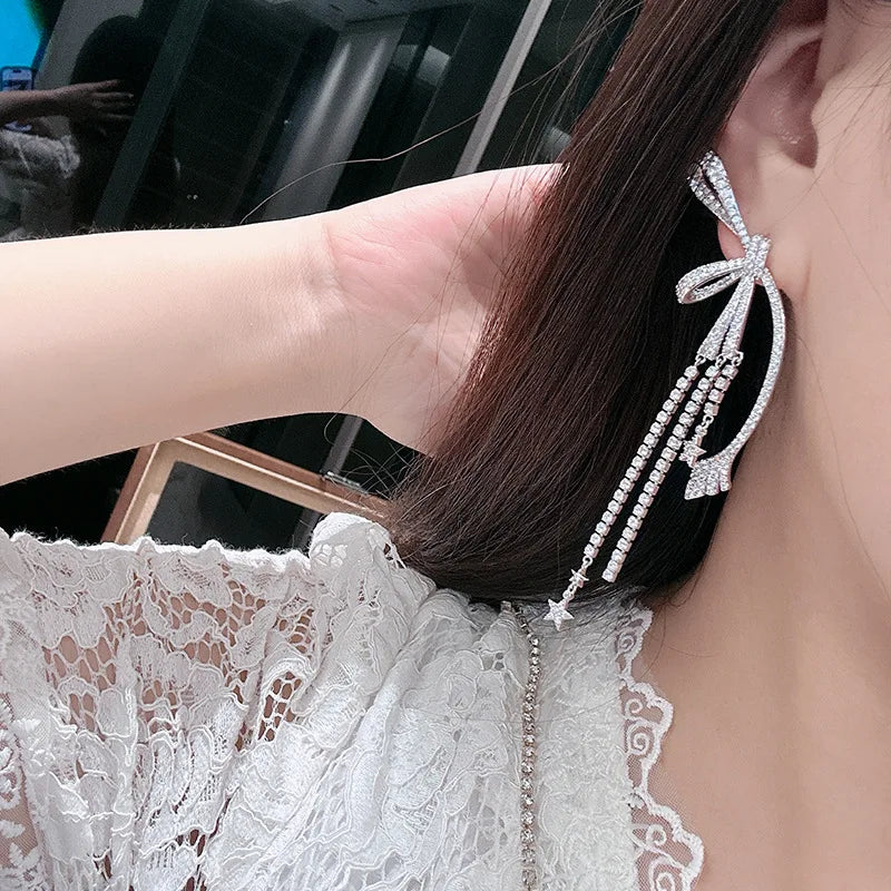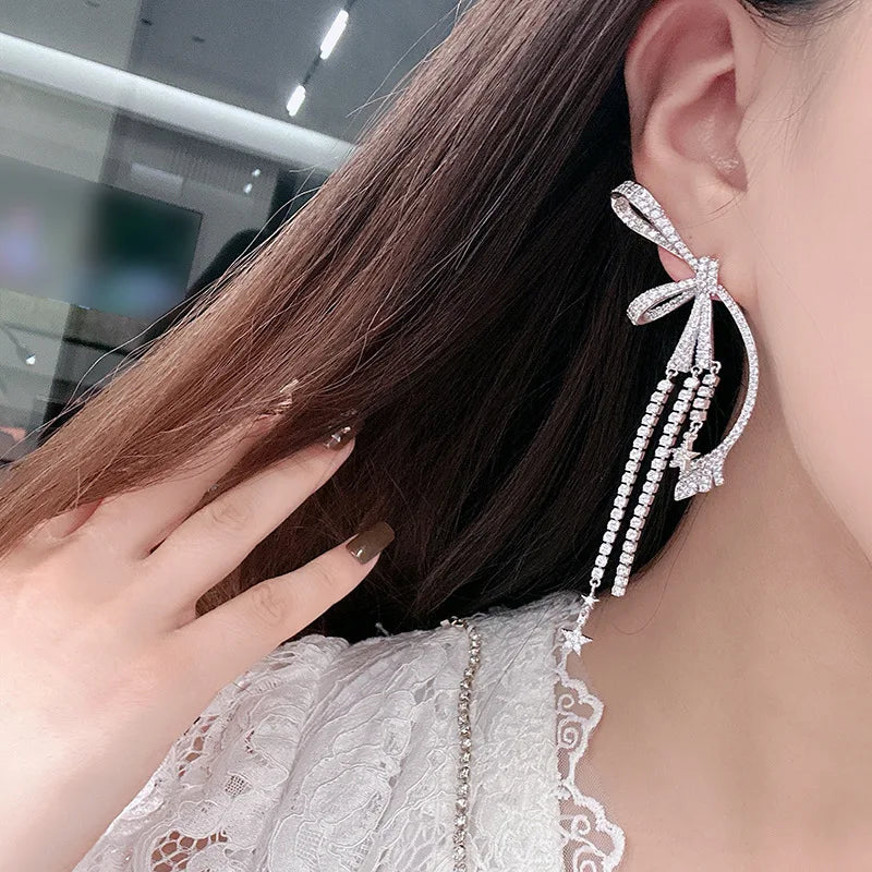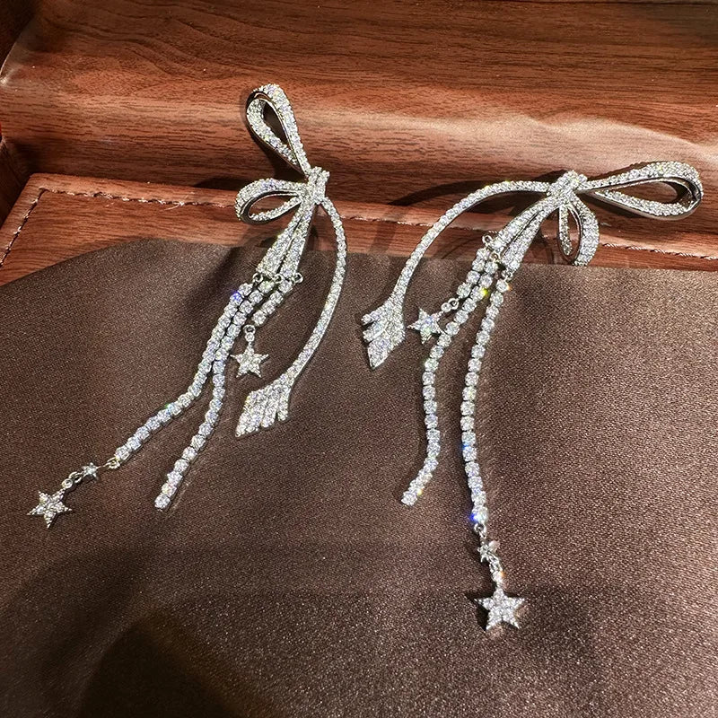 Star Long AAA Zircon Bridal Earrings CZ Cubic Zirconia Wedding Earring For Brides Accessories Women Birthday Gift Jewelry