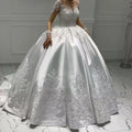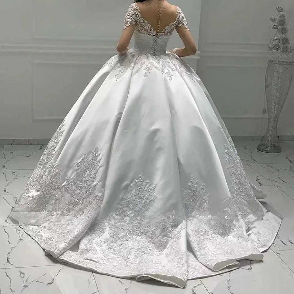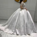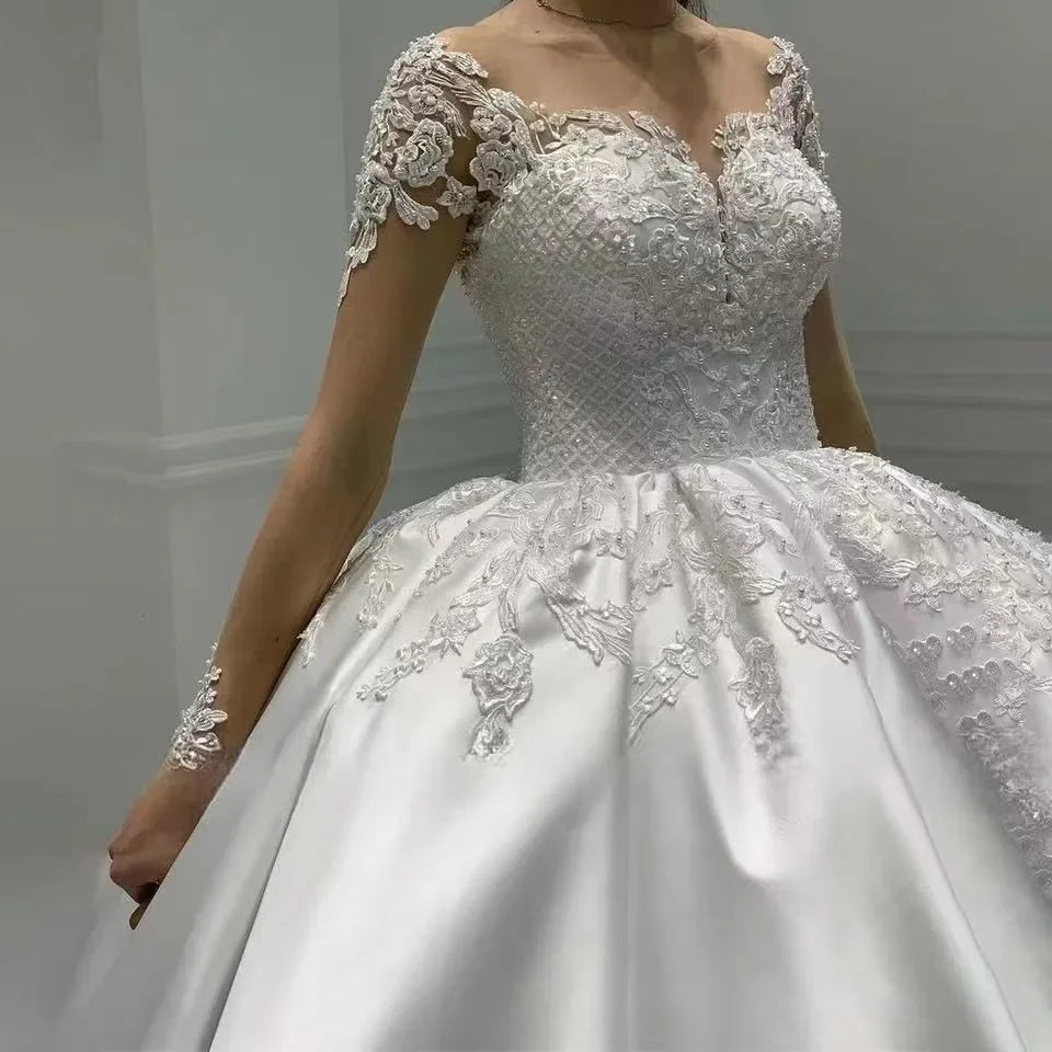 Sweetheart Satin Ball Gown Customized Long Sleeve Wedding Dress Pearl Princess Lace Applique Bridal Dress vestidos de novia