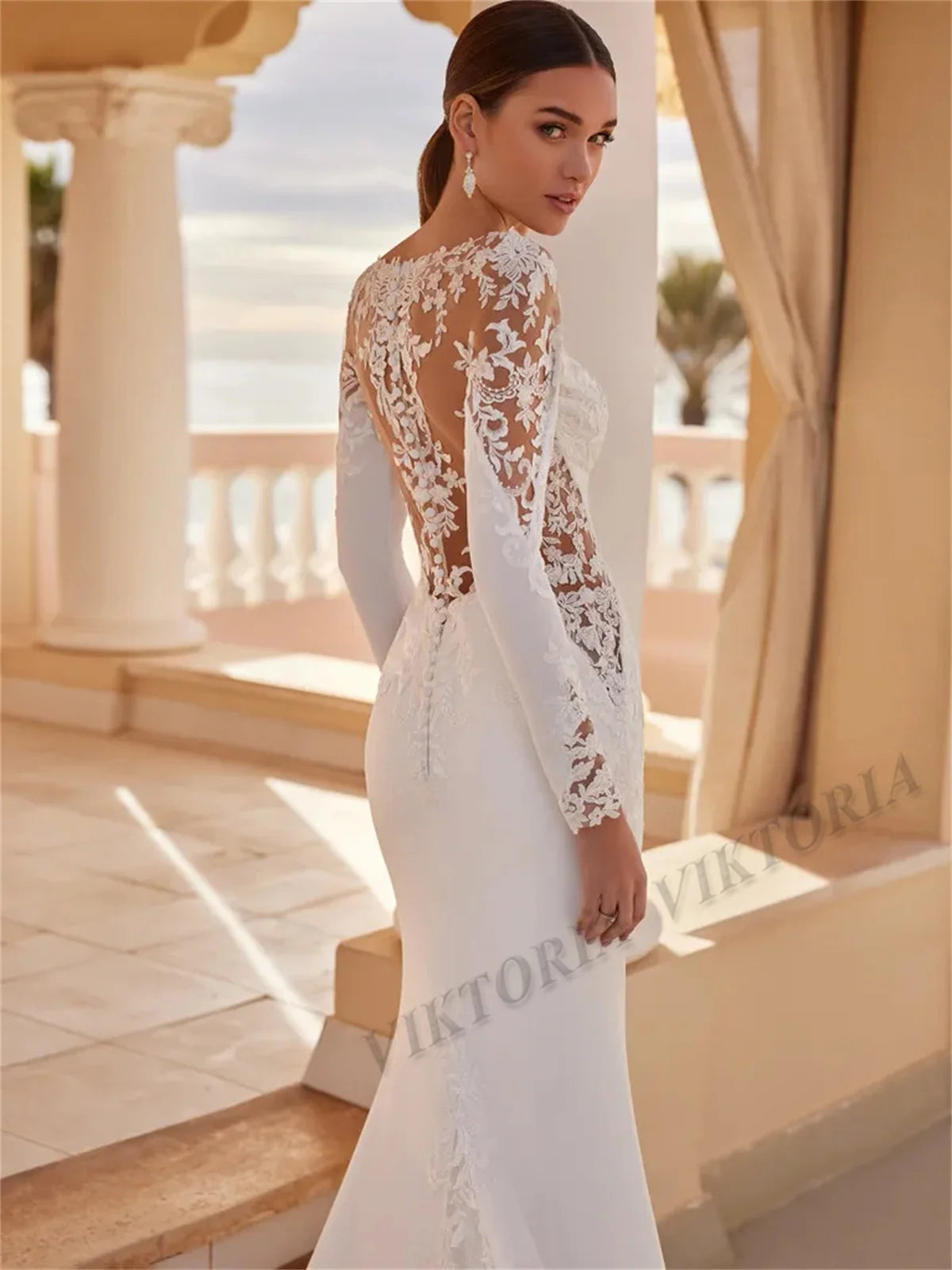 VIKTORIA Trendy Mermaid Wedding Dresses with Long Sleeves Lace Appliques V-neck Court Train Vestidos De Novia Custom Made