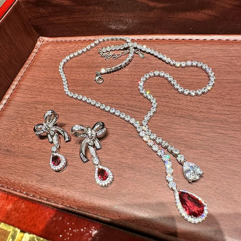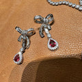 Vintage AAA Zircon Bridal Earrings Red CZ Zirconia Wedding Earring For Brides Women Accessories Dinner Party Dress Jewelry