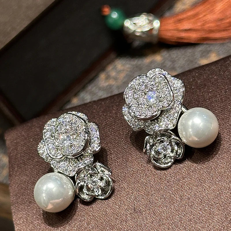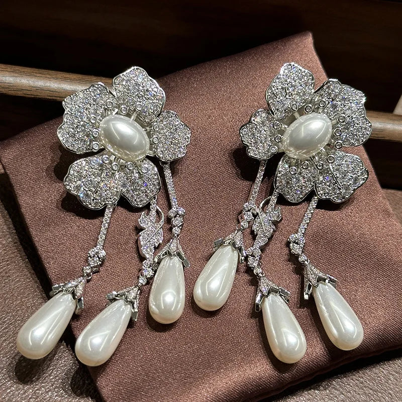 Vintage Flower Bridal Earrings Pearl Zirconia Wedding Earring For Brides Bridesmaids Accessories Women Birthday Gifts Jewelry