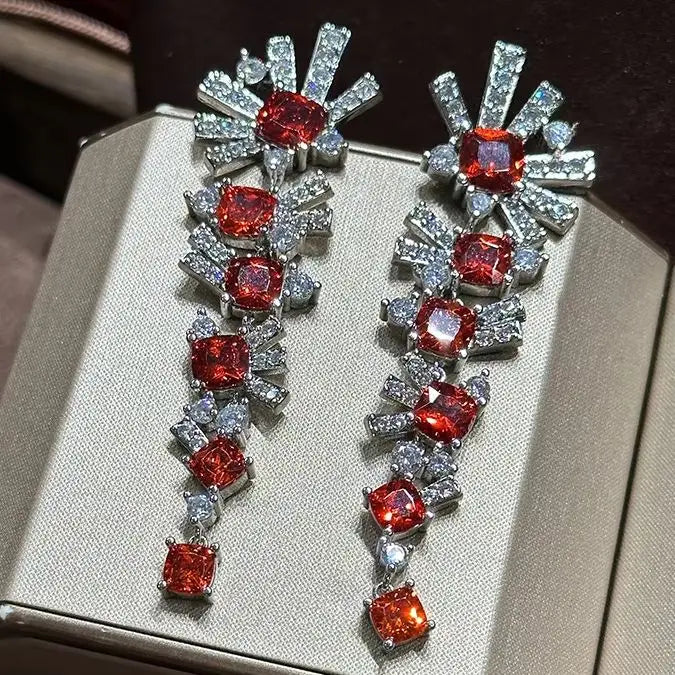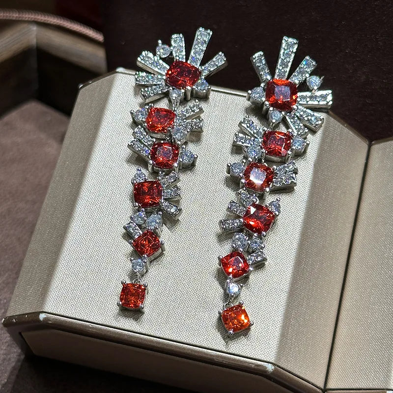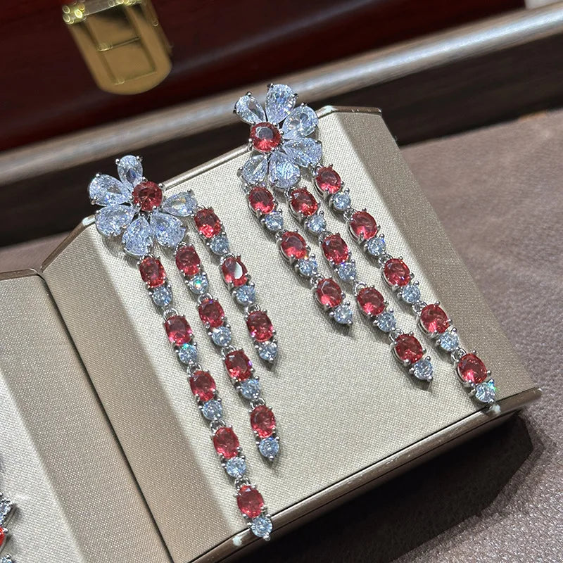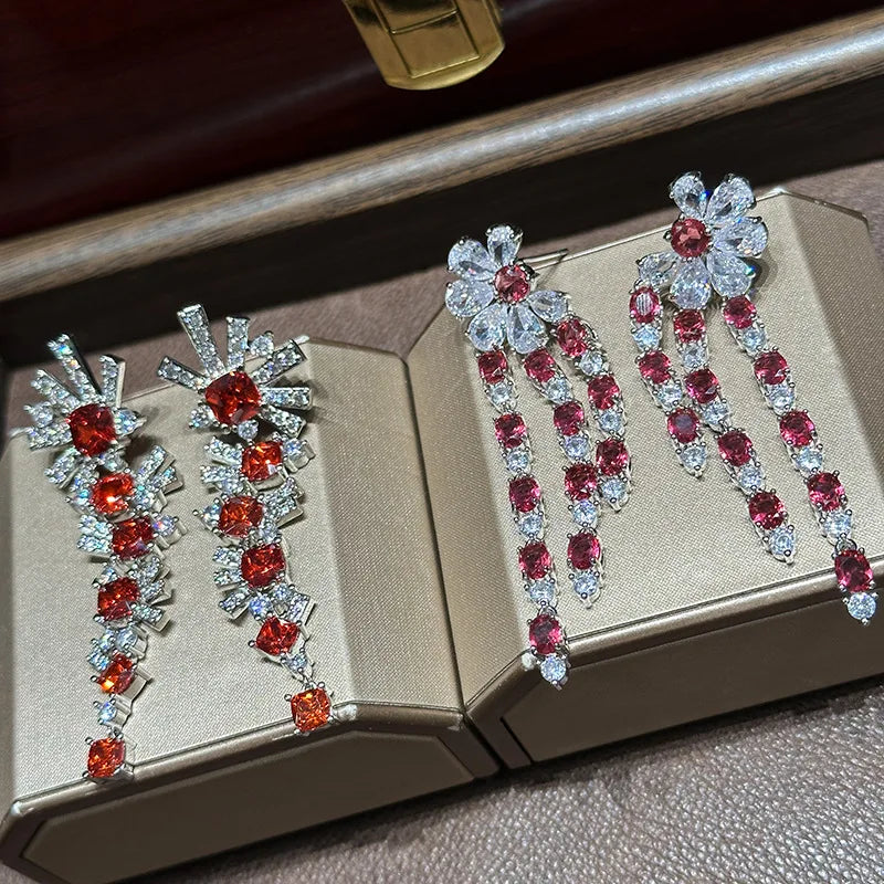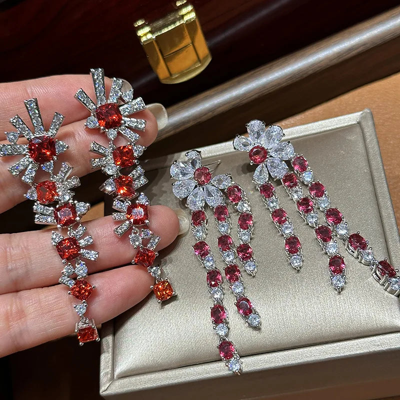 Vintage Red AAA Zircon Bridal Earrings Cubic Zirconia Wedding Earring For Women Brides Accessories Dinner Party Dress Jewelry