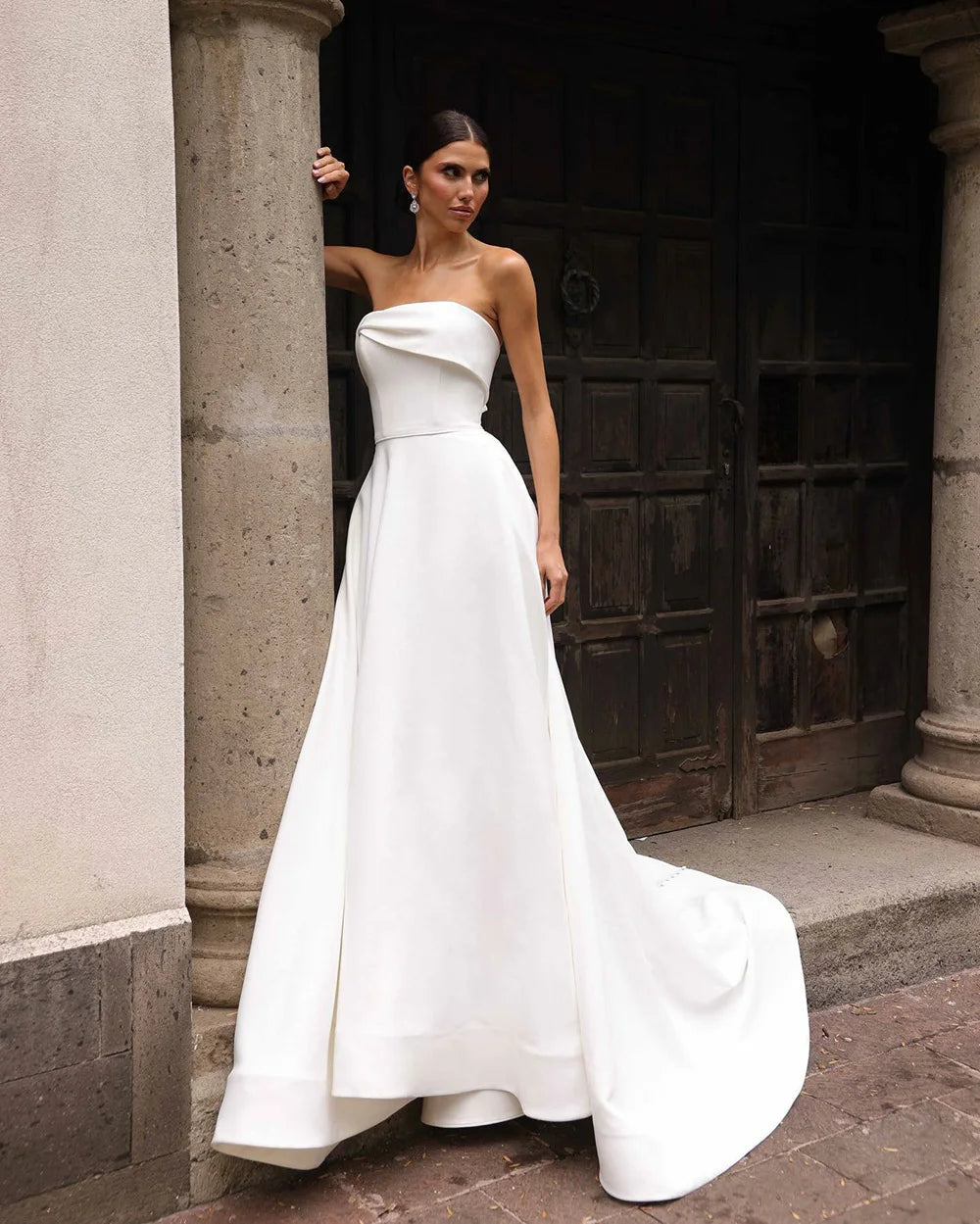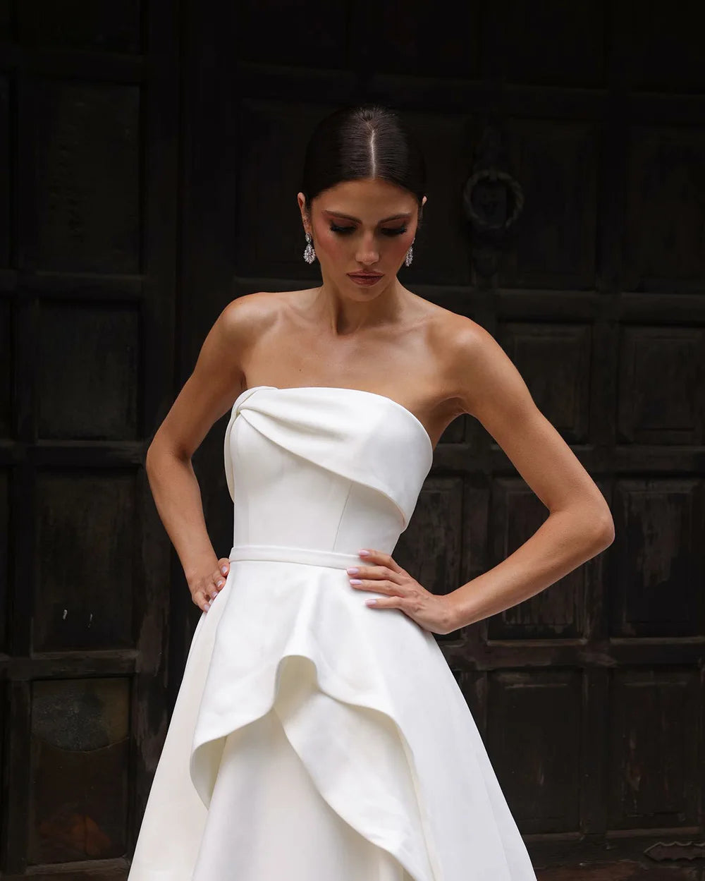 Vintage Satin Wedding Dresses 2025 Strapless Pleated Luxury Wedding Gown Layered Skirt Elegant Women Bridal Dress Customized