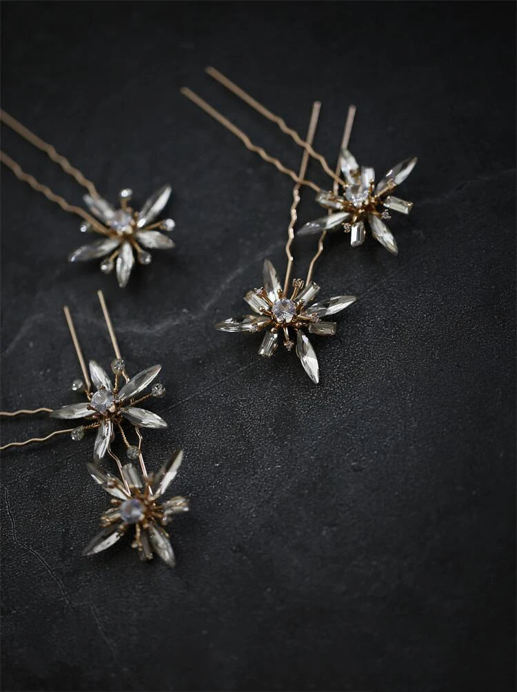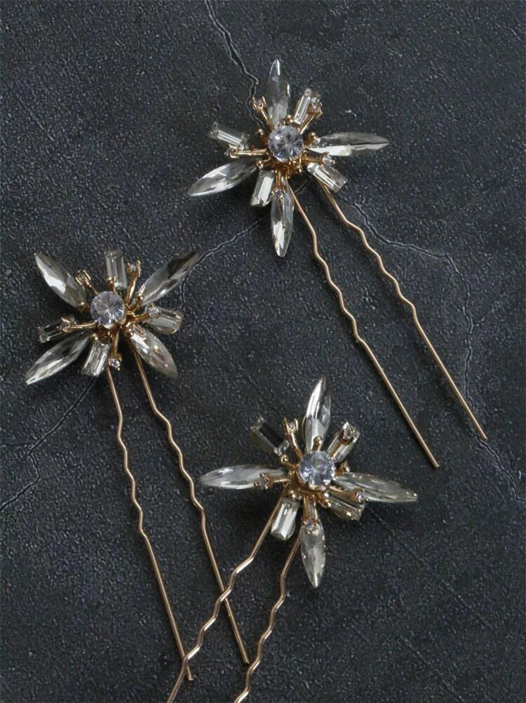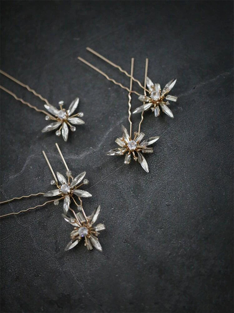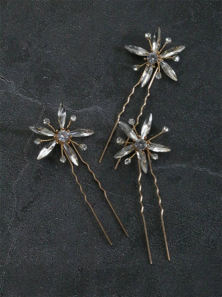 Wedding Accessories Crystal Rhinestones Hair Pins Clips Gold Color Head Pieces For Brides Bridesmaids Hairpins Bridal Jewelry