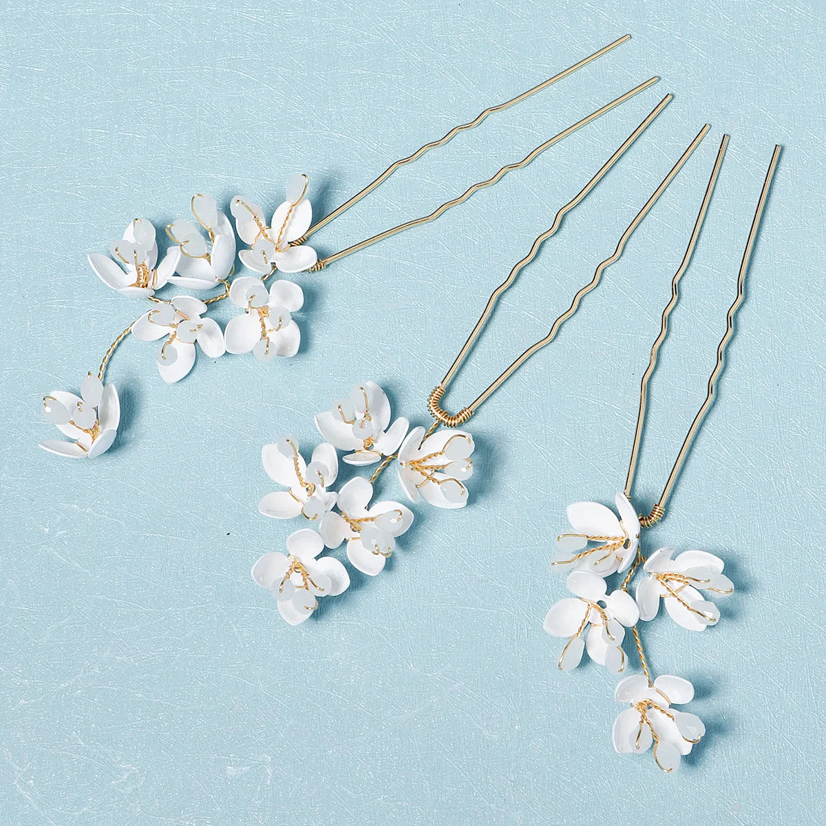 Wedding Accessories Flower Head Pieces Gold Color Hairpins For Bridesmaids Brides Girl Women Hair Pins Clips Bridal Jewelry