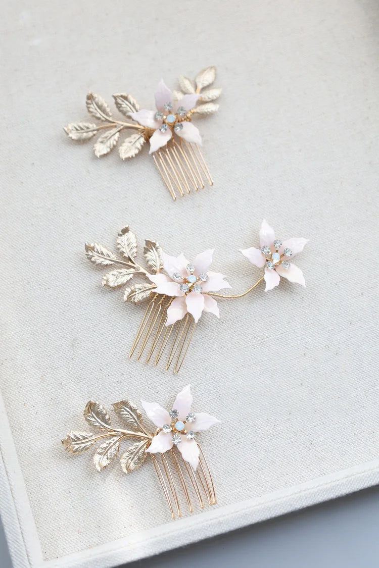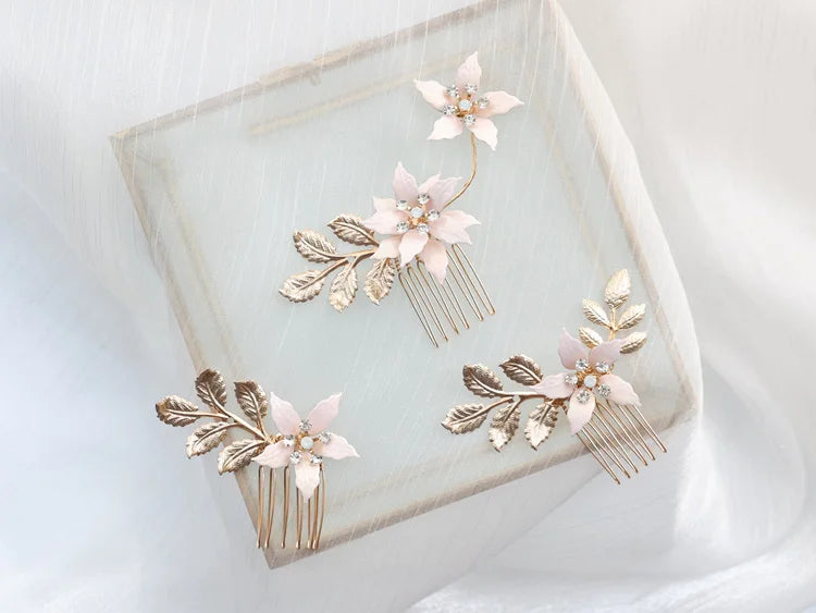 Wedding Accessories Gold Color Flower Hair Comb Pin Clip Crystal Hairpins For Brides Bridesmaids Leaf Head pieces Bridal Jewelry
