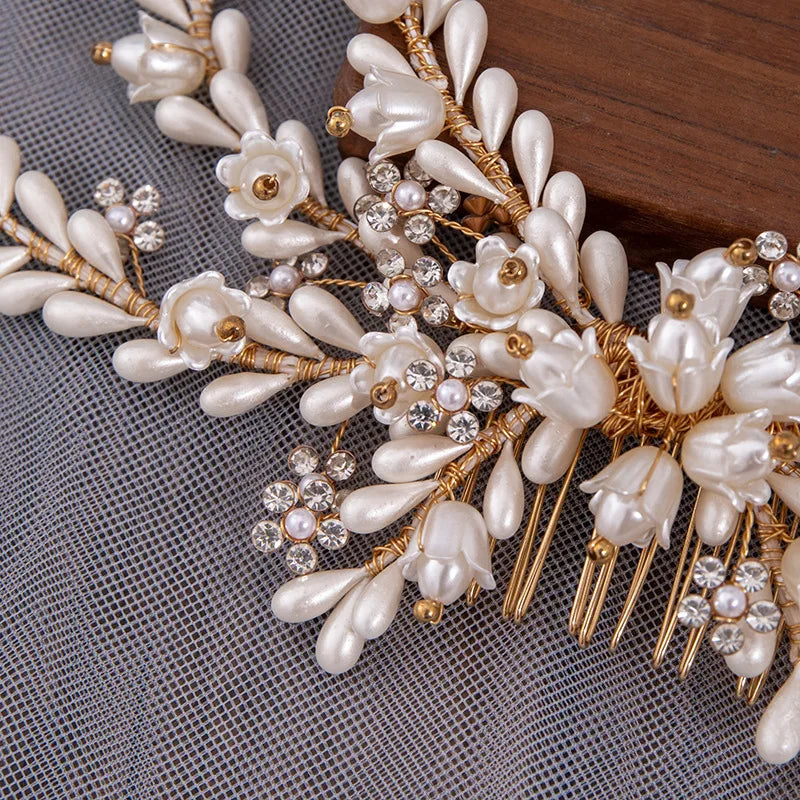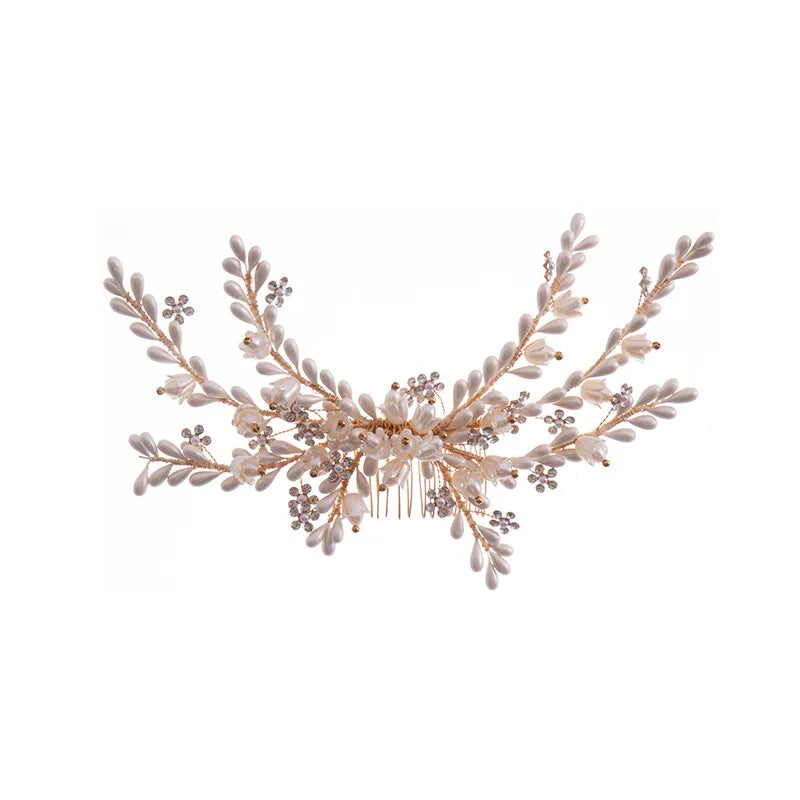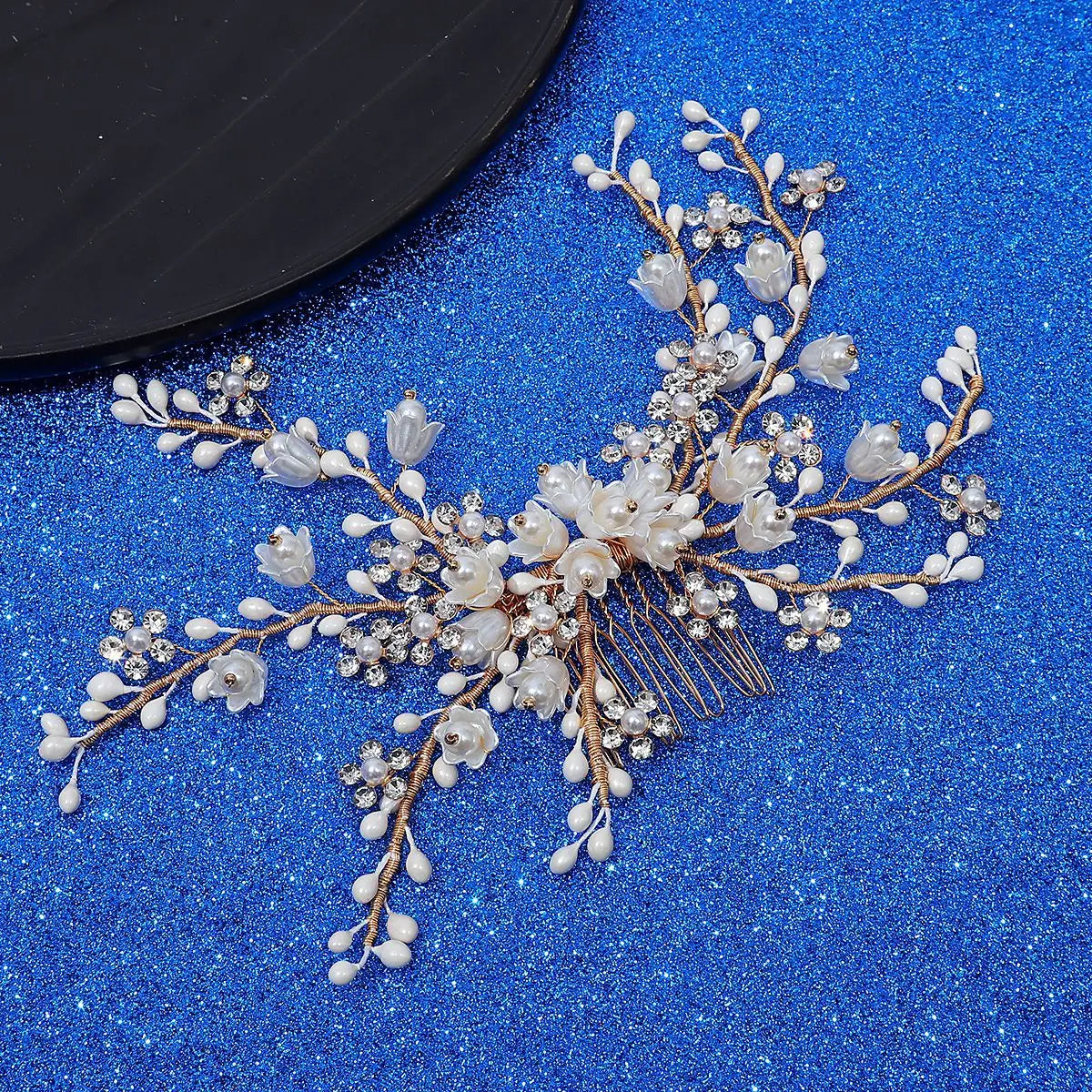 Wedding Accessories Gold Color Hair Comb Pin Flower Head Pieces For Brides Crystal Evening Party Dress Headdress Bridal Jewelry