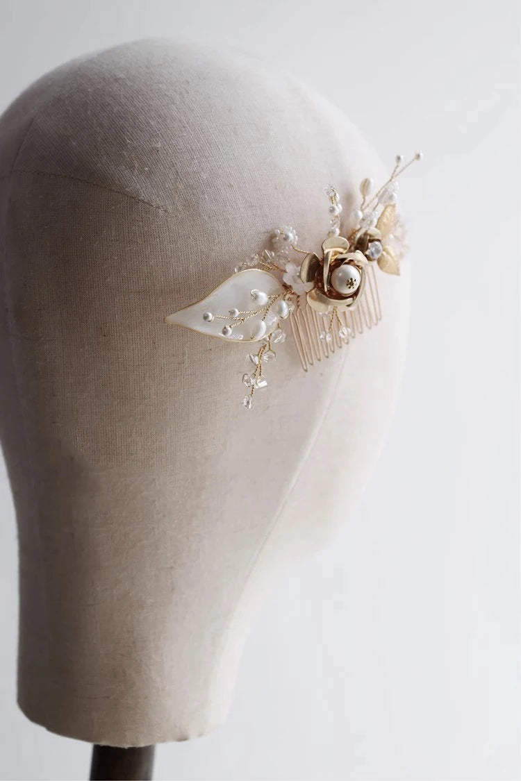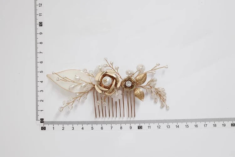 Wedding Accessories Gold Color Hair Comb Pin Pearl Crystal Hairpin Bride Birthday Gift Flower Leaf Head Piece Bridal Jewelry