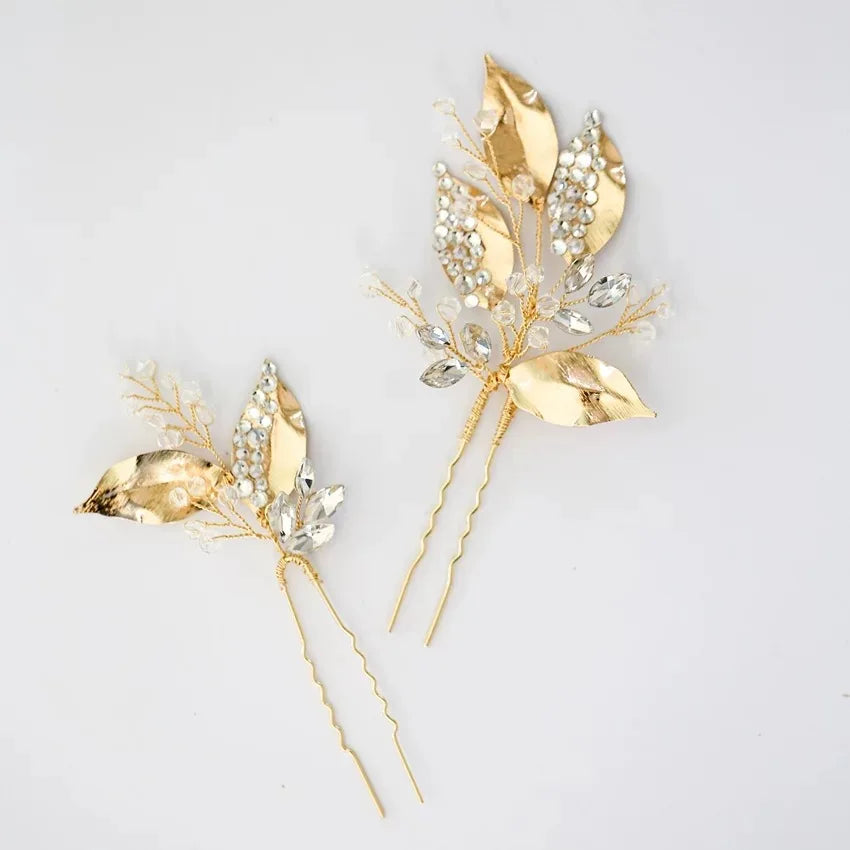 Wedding Accessories Gold Color Hair Pin Clip Rhinestones Crystal Head Piece For Bride Bridesmaids Hairpin Bridal Jewelry