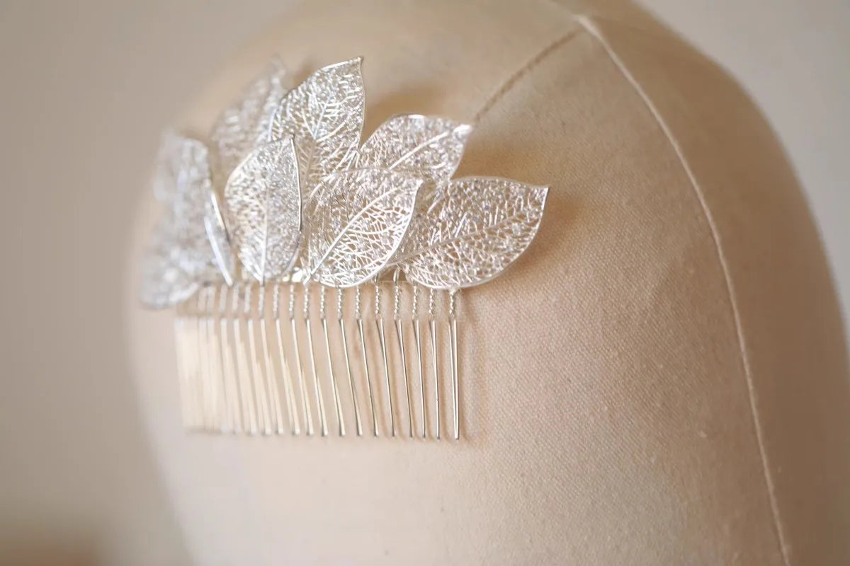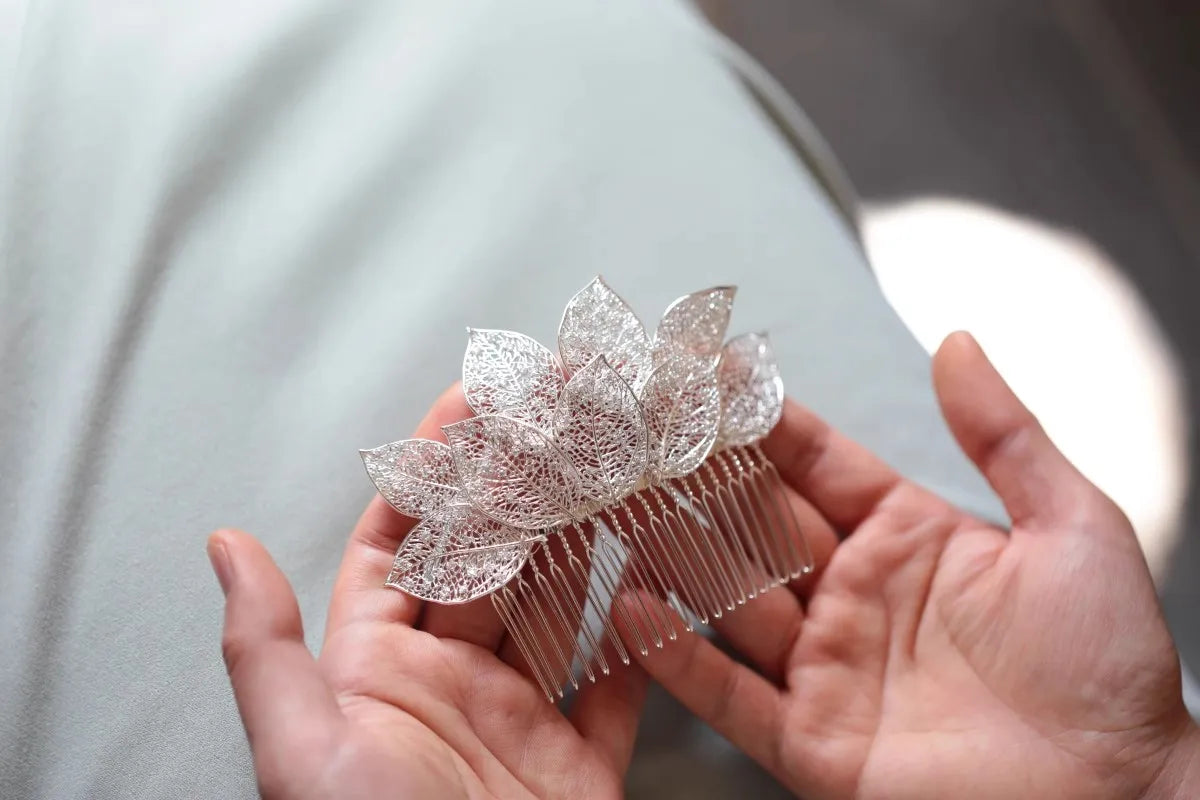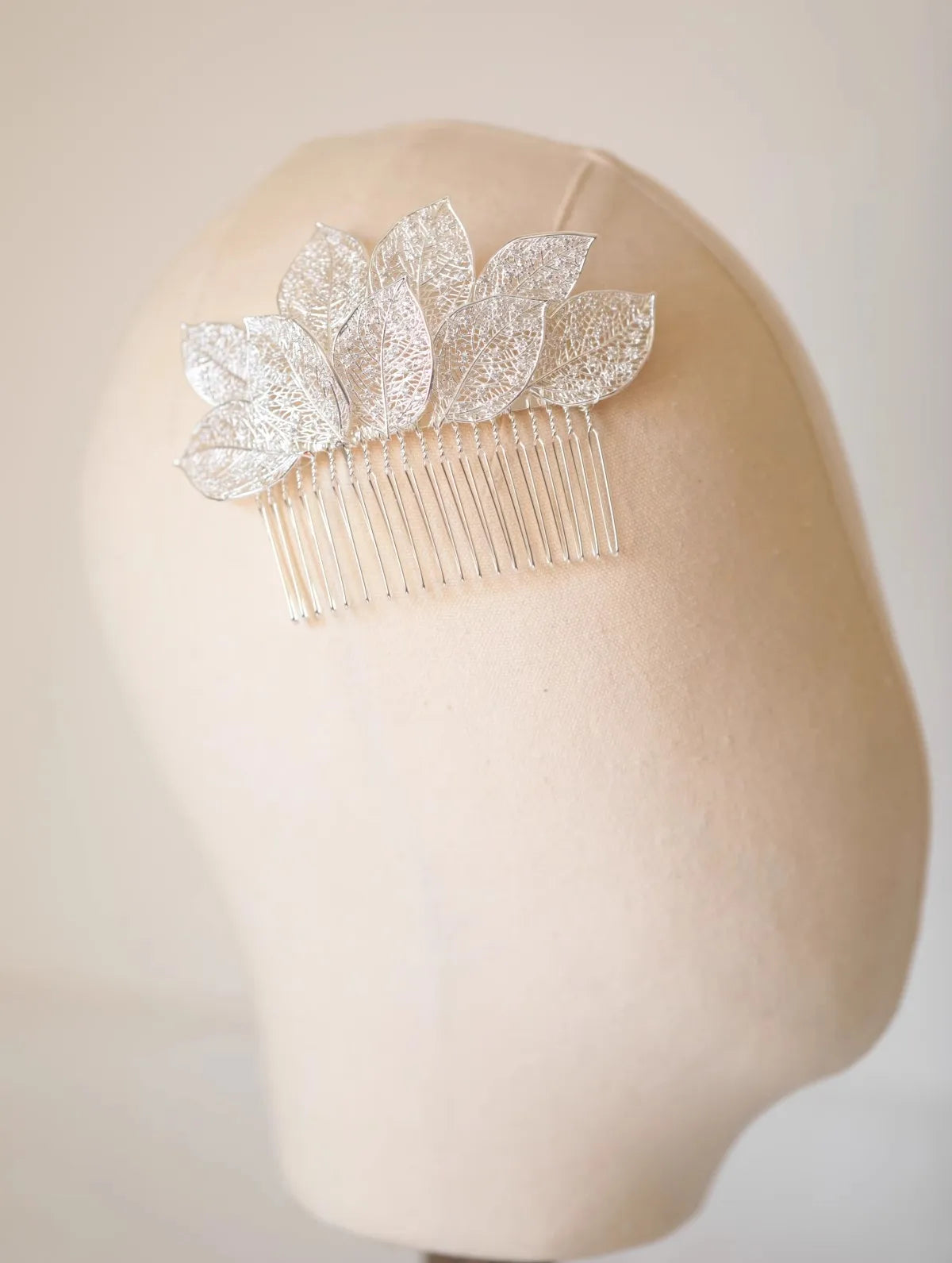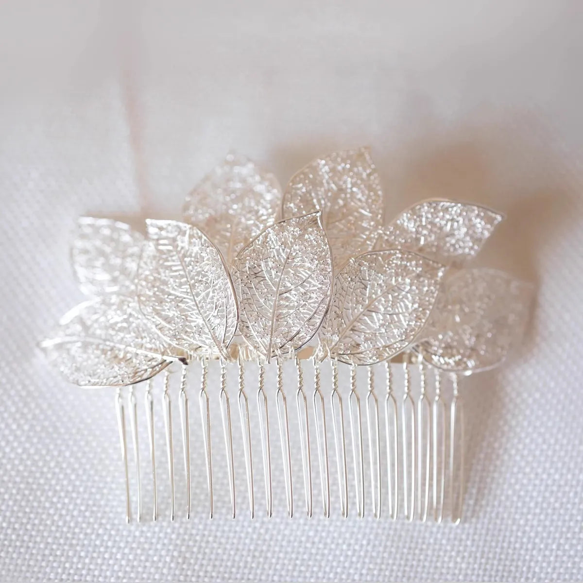 Wedding Accessories Leaf Hair Comb Pin Clip Silver Color Hairpins For Brides Women Zircon Zirconia Head Pieces Bridal Jewelry