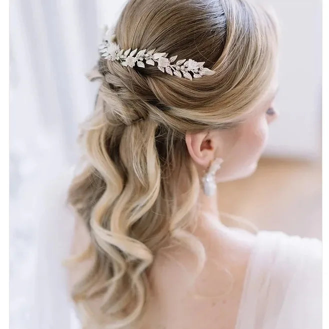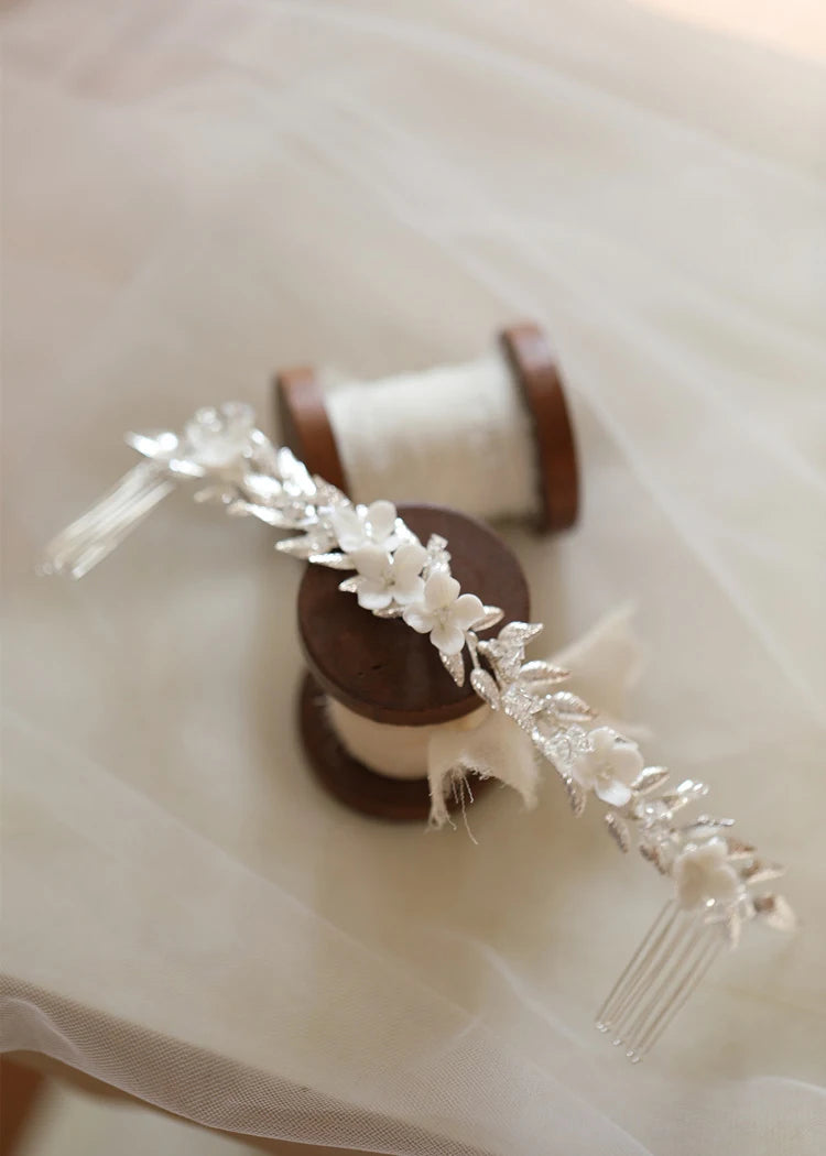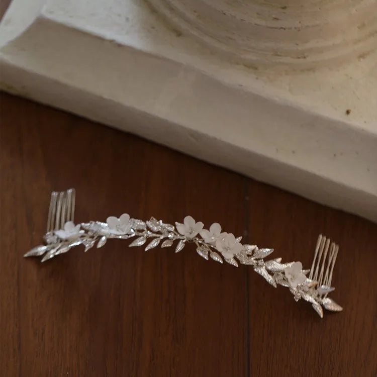 Wedding Accessories Long Hair Comb Pin Porcelain Flower Hairpins For Brides Women Leaf Headband Headpieces Bridal Jewelry