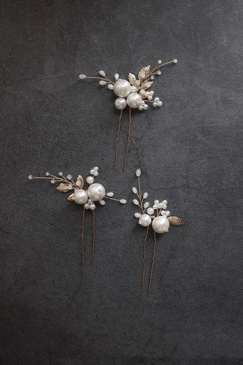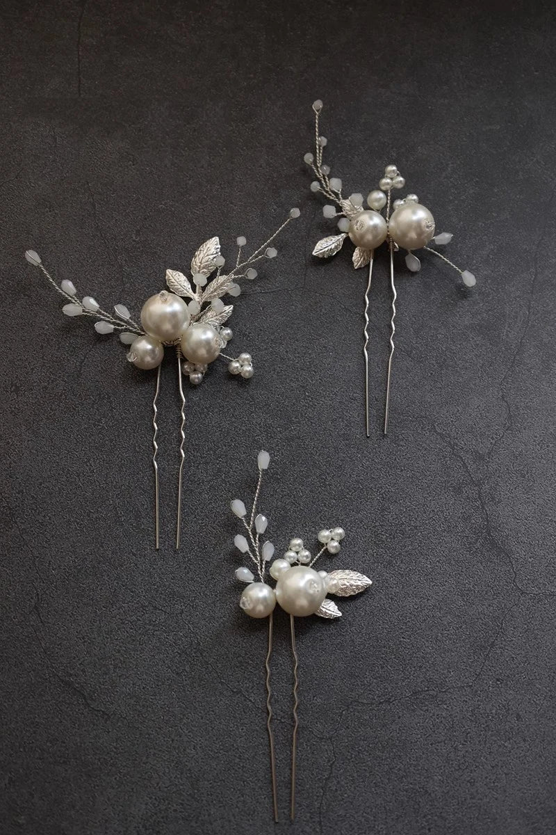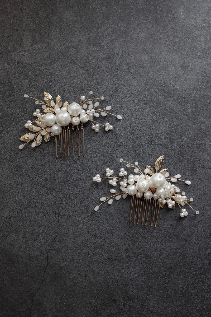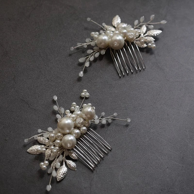 Wedding Accessories Pearl Beaded Hair Pin Clip Comb Gold Silver Color Hairpin For Bride Leaf Headdress Head Piece Bridal Jewelry