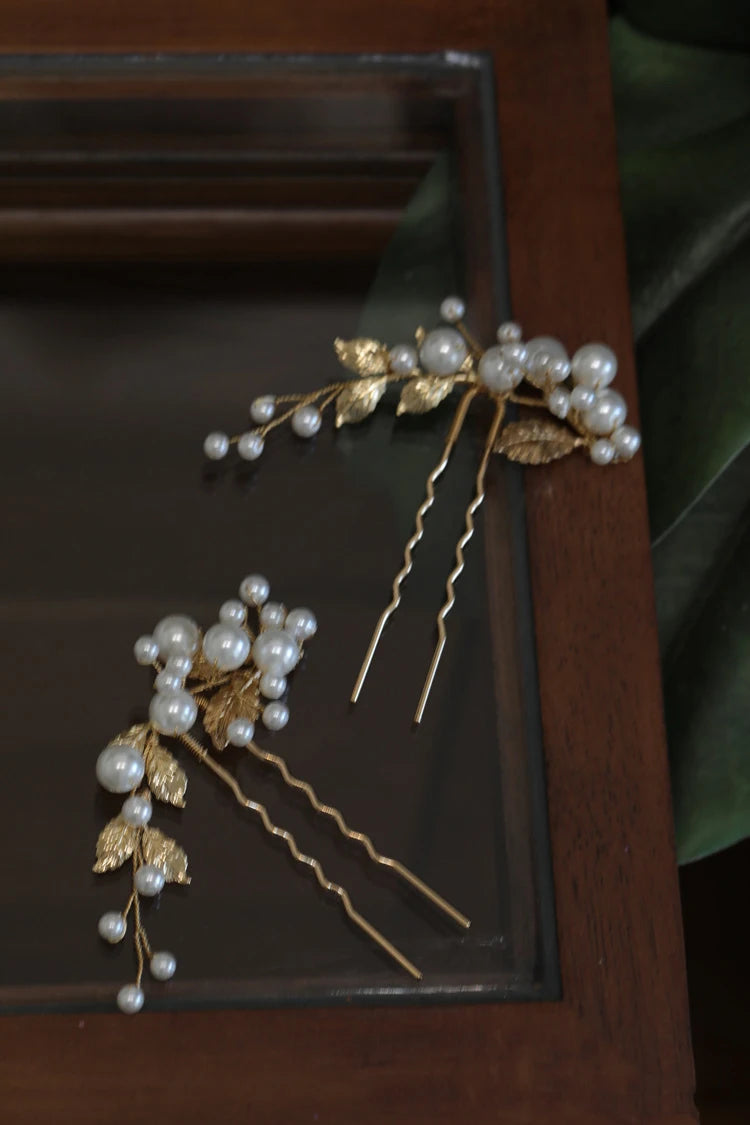 Wedding Accessories Pearl Head Piece Gold Silver Color Hair Pins Clips For Bridesmaids Brides Women Leaf Hairpins Bridal Jewelry