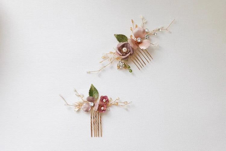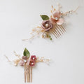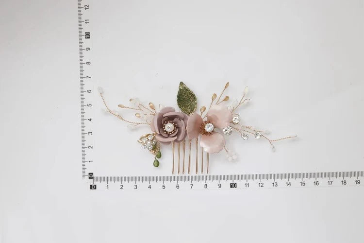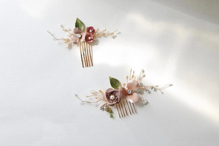 Wedding Accessories Pink Flower Hairpin Leaf Hair Comb Pin Clip For Brides Bridesmaids Crystal Pearl Head Piece Bridal Jewelry