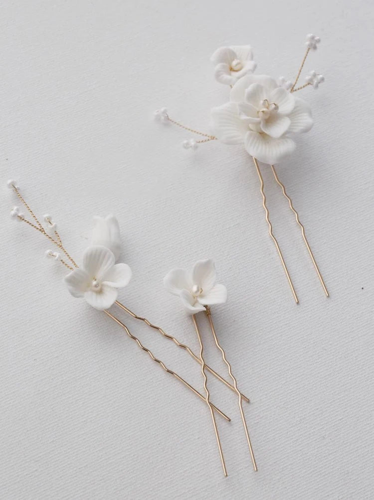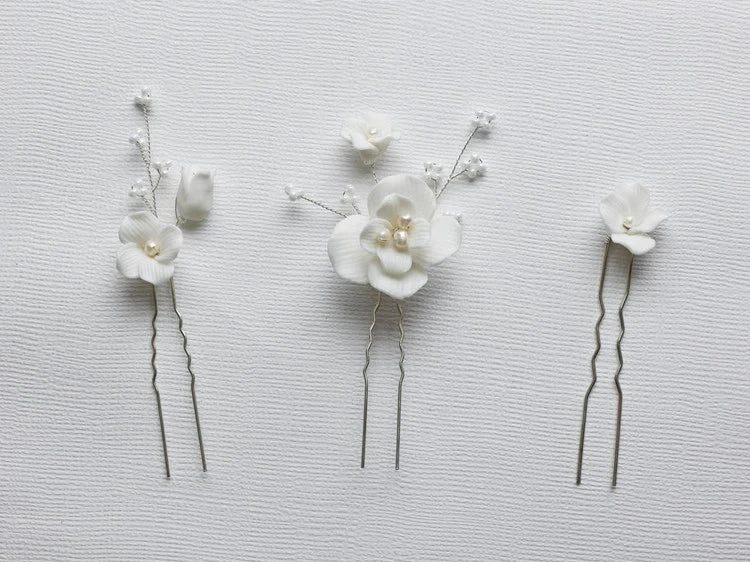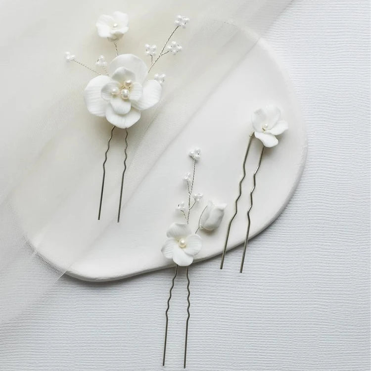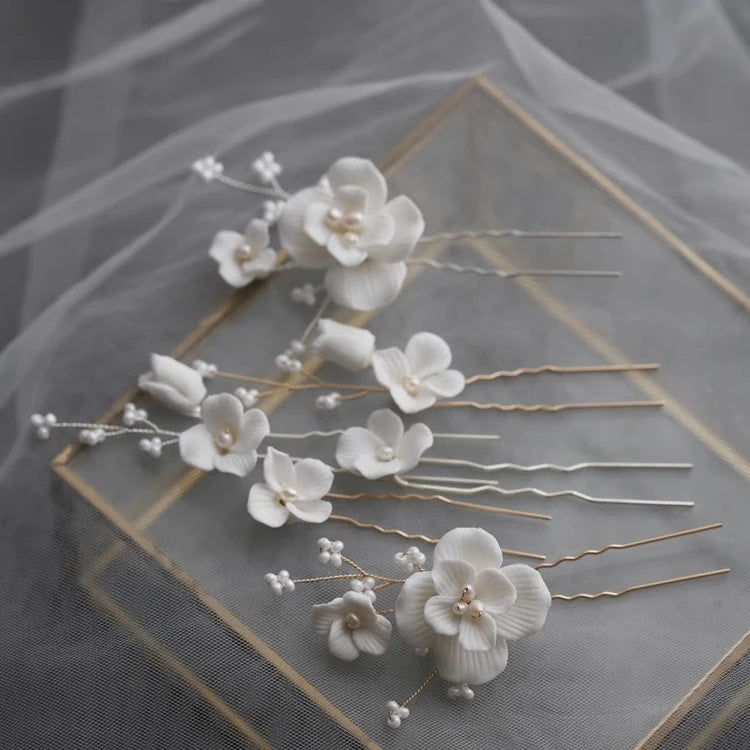 Wedding Accessories Porcelain Flower Hair Clip Pin Gold Silver Color Hairpin Brides Bridesmaids Women Head Piece Bridal Jewelry