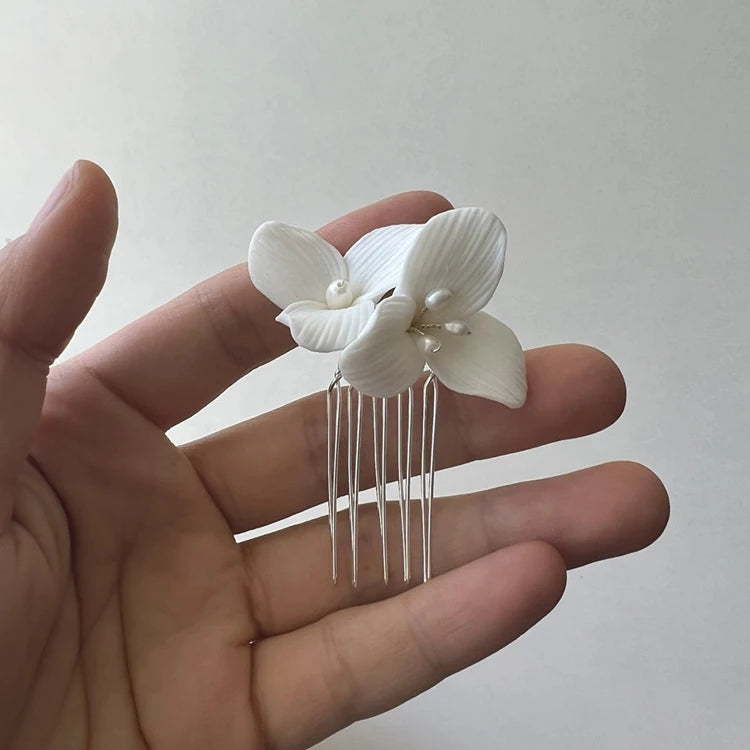 Wedding Accessories Porcelain Flower Hair Comb Clip Freshwater Pearl Hairpins For Brides Bridesmaids Head Pieces Bridal Jewelry