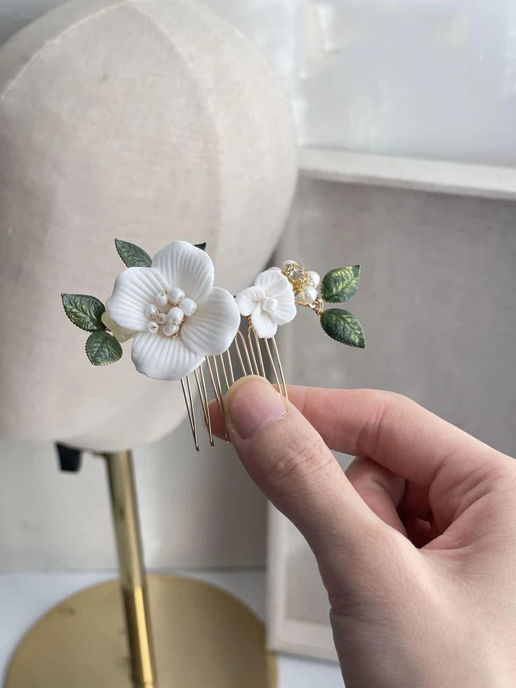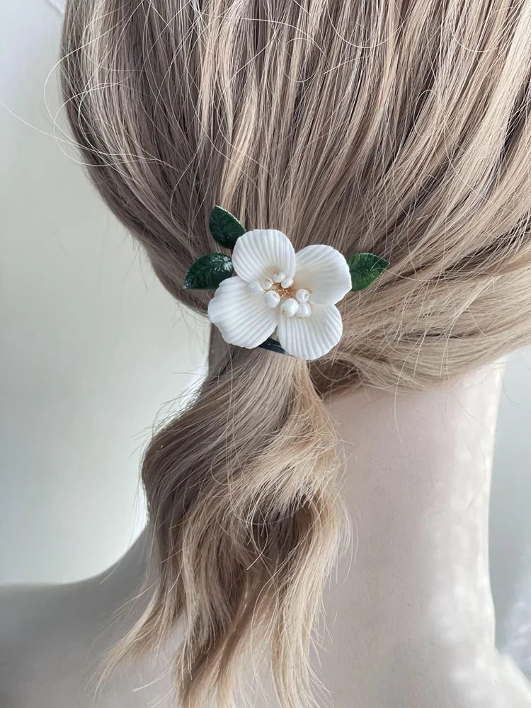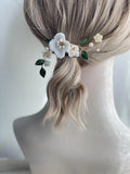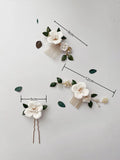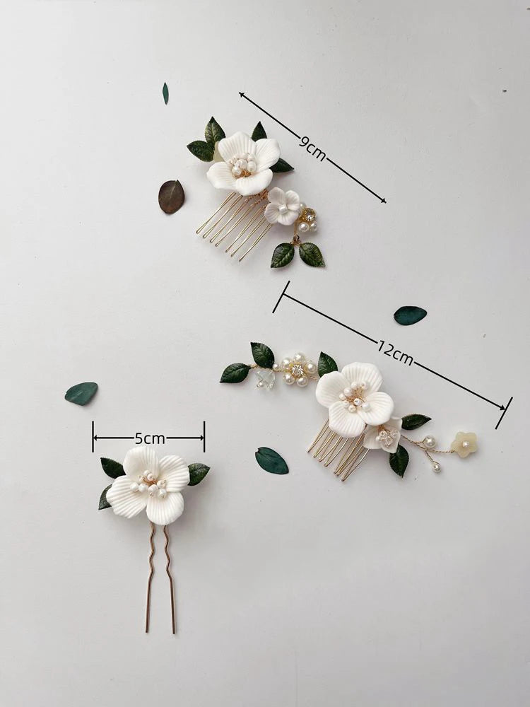 Wedding Accessories Porcelain Flower Hair Pin Clip Leaf Hairpins For Brides Bridesmaids Gold Color Head Pieces Bridal Jewelry