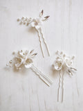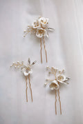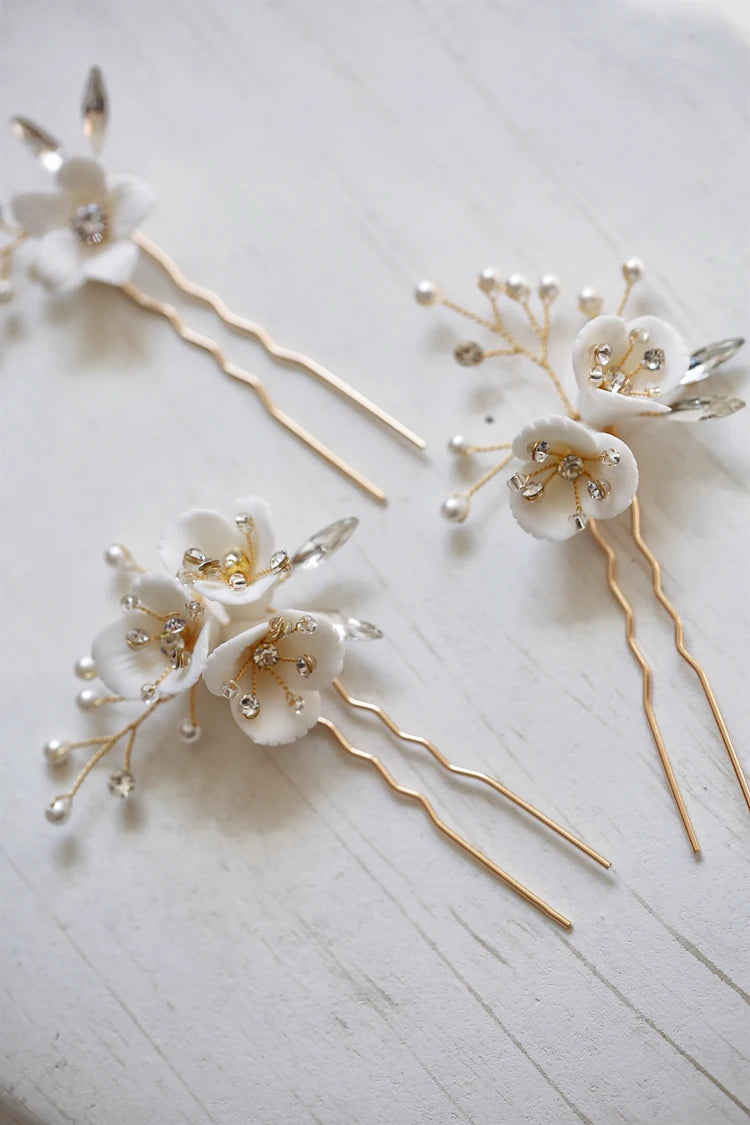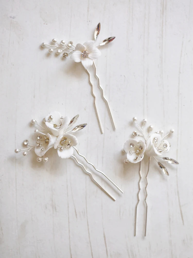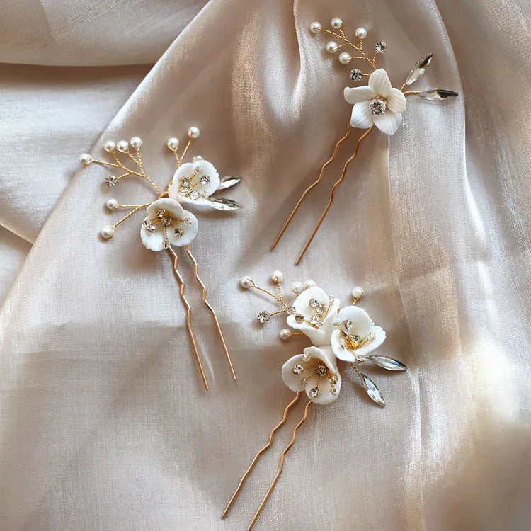 Wedding Accessories Rhinestones Crystal Head Pieces Porcelain Flower Hair Pins Clips Hairpins Brides Headdress Bridal Jewelry