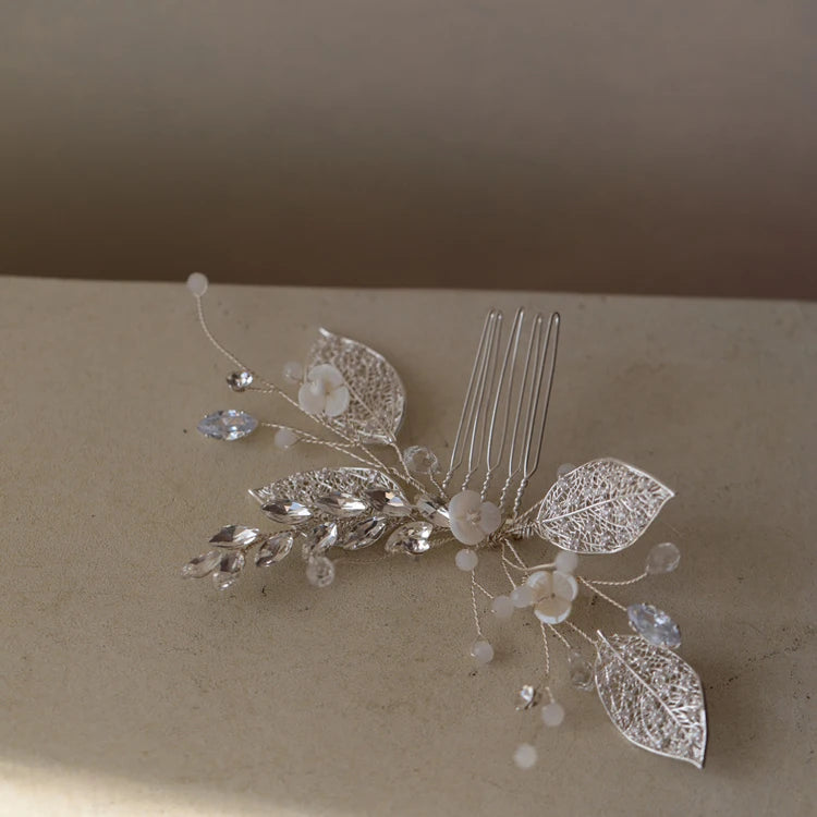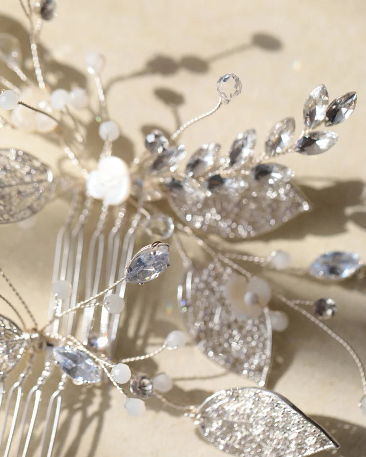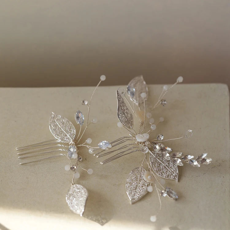 Wedding Accessories Zircon Crystal Hair Comb Pin Clip Silver Color Leaf Head Piece For Brides Bridesmaids Hairpin Bridal Jewelry