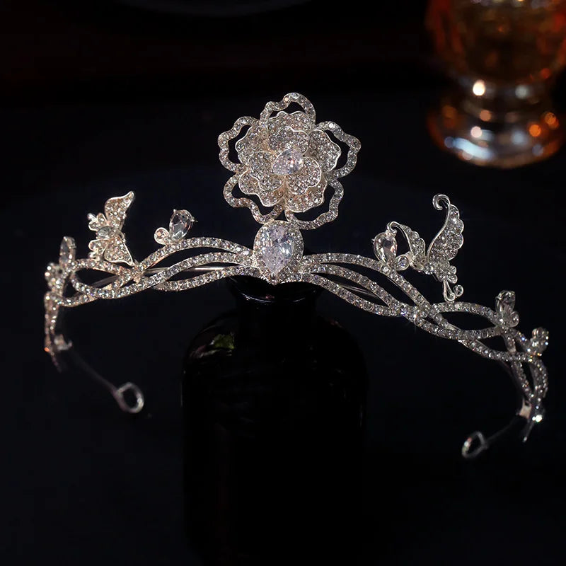 Wedding Hair Accessories Rhinestones Zircon Tiara Crown Flower Diadem For Brides Women Gift Headpiece Headband Bridal Jewelry