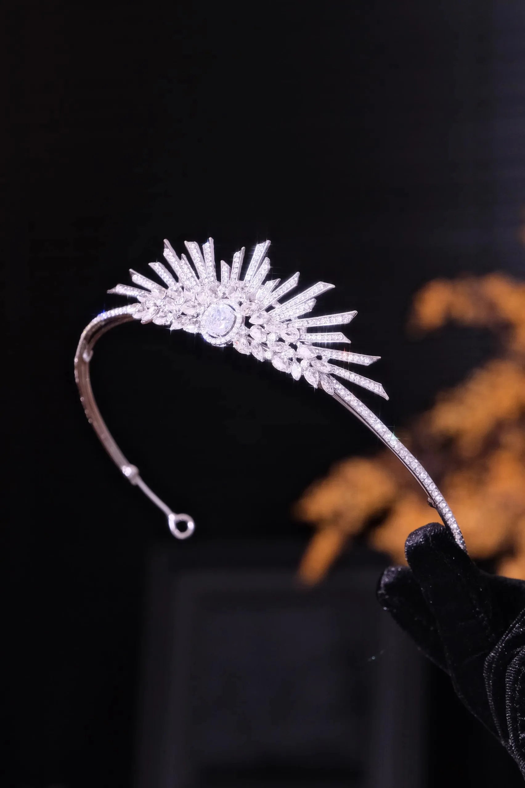 Wedding Hair Accessories Zirconia Rhinestones Tiaras and Crowns Crystal Headband Women Brides Pageant Prom Diadem Bridal Jewelry