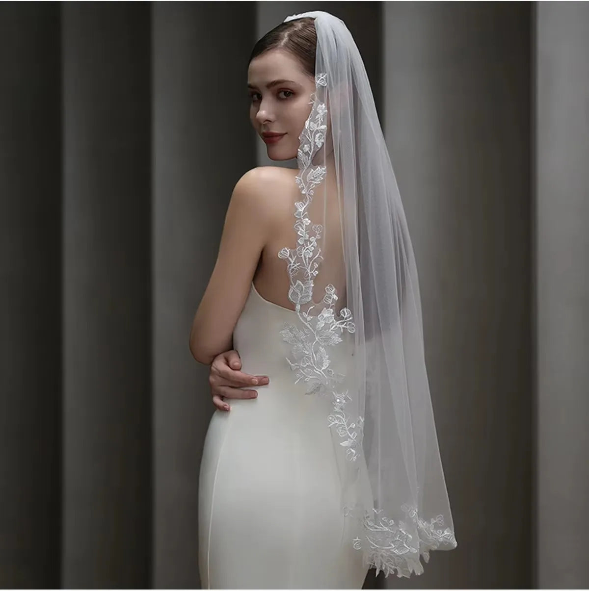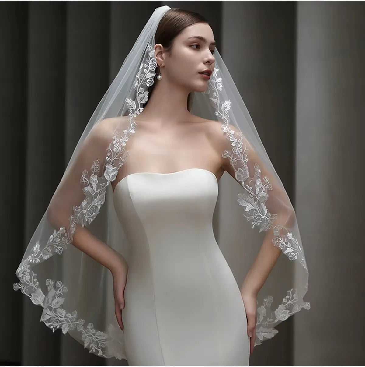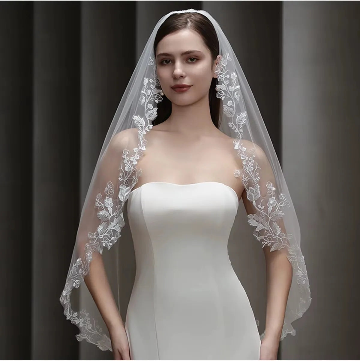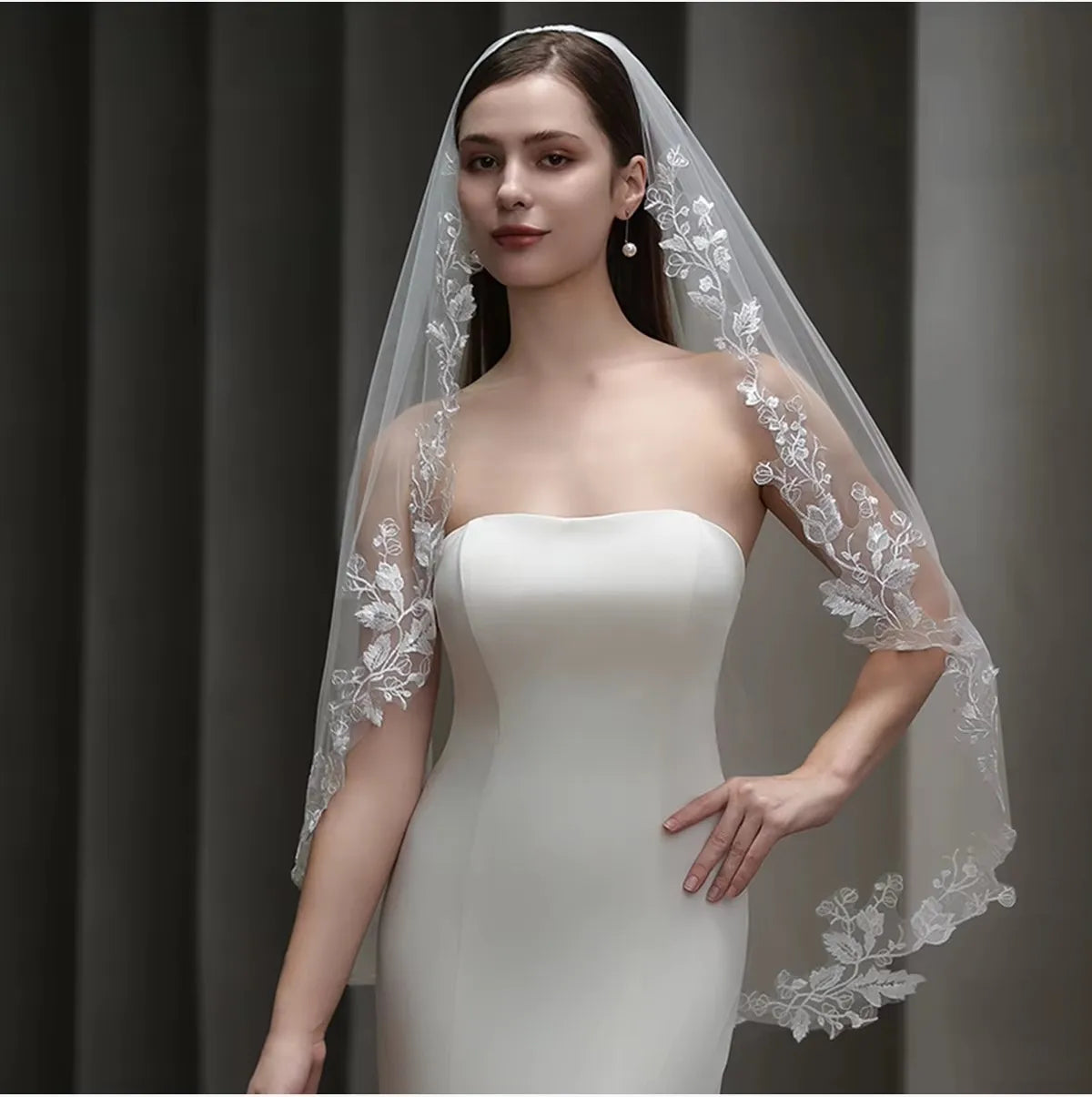 White Bridal Veil Leaf Lace Wedding Veils For Brides Evening Dinner Party Dress Women Girl Gifts Hair Accessories Jewelry