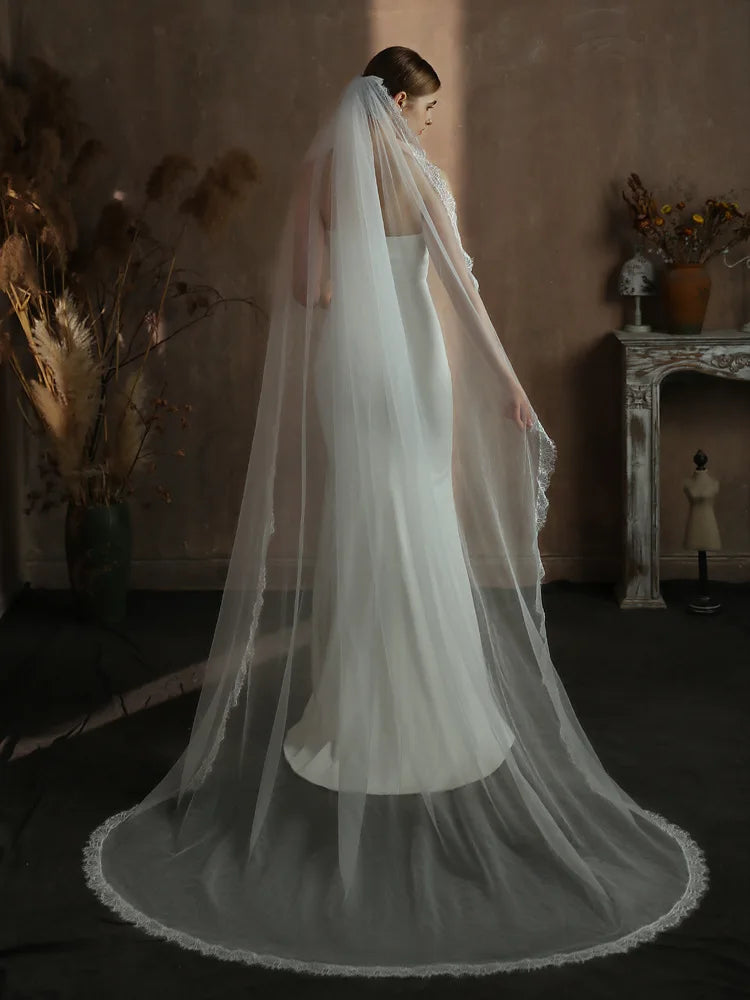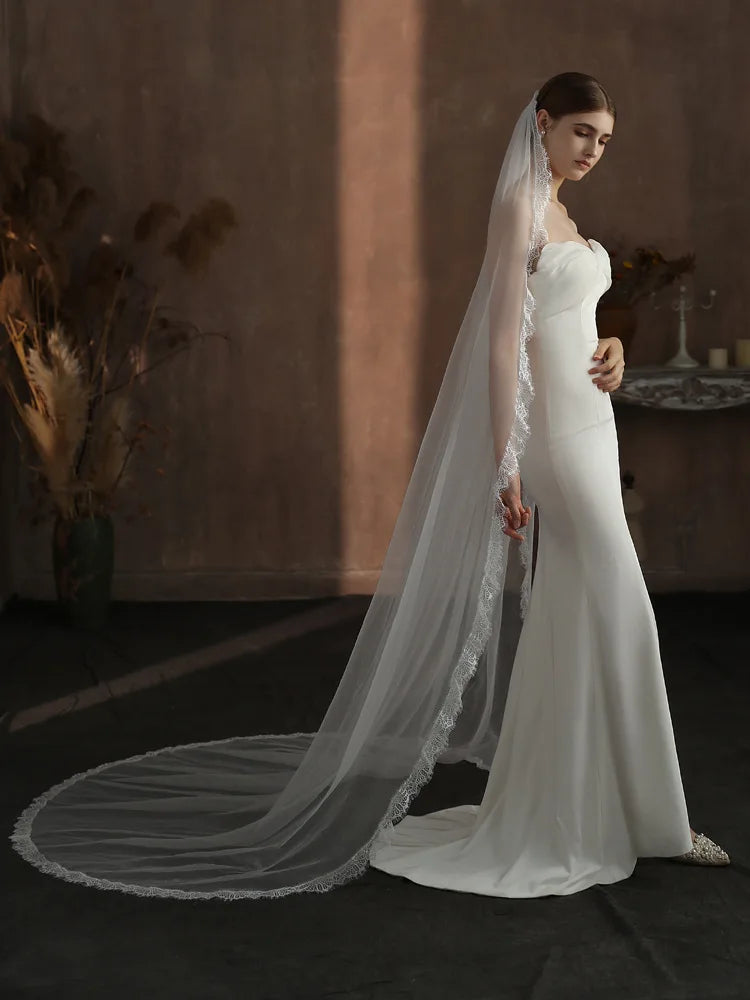 White Bridal Veil Long Lace Wedding Veils For Brides Evening Dinner Party Dress Women Girl Gifts Hair Accessories Jewelry