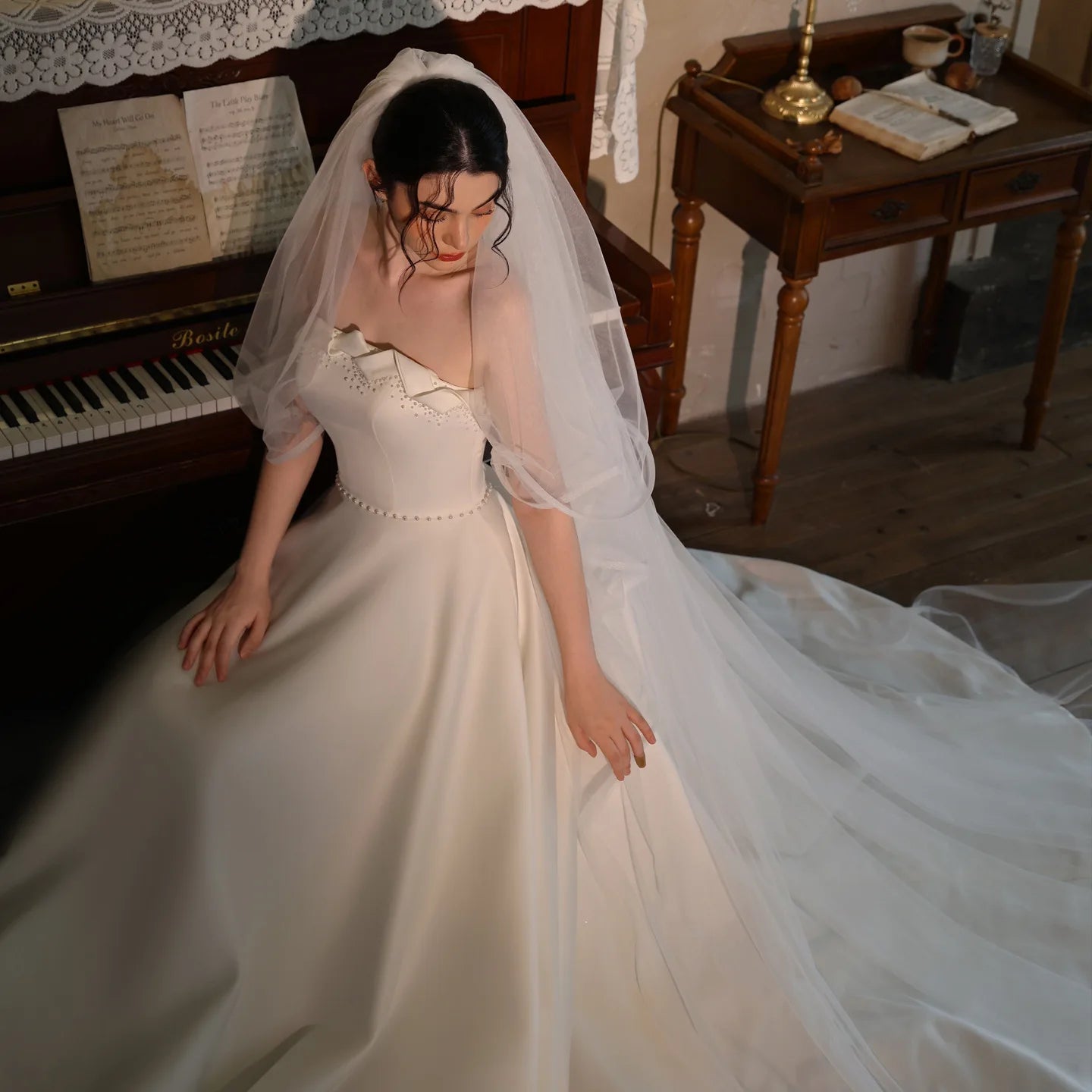 White Bridal Veil With Comb Wedding Veils For Brides Evening Dinner Party Dress Women Girl Gifts Hair Accessories Jewelry