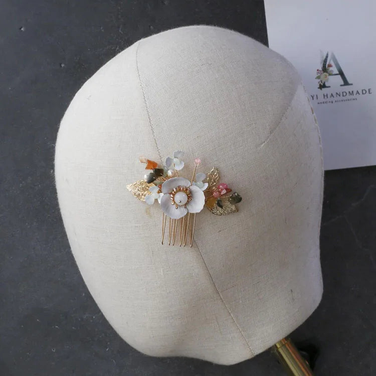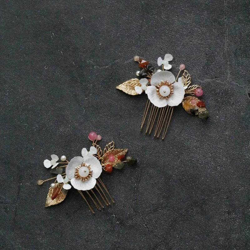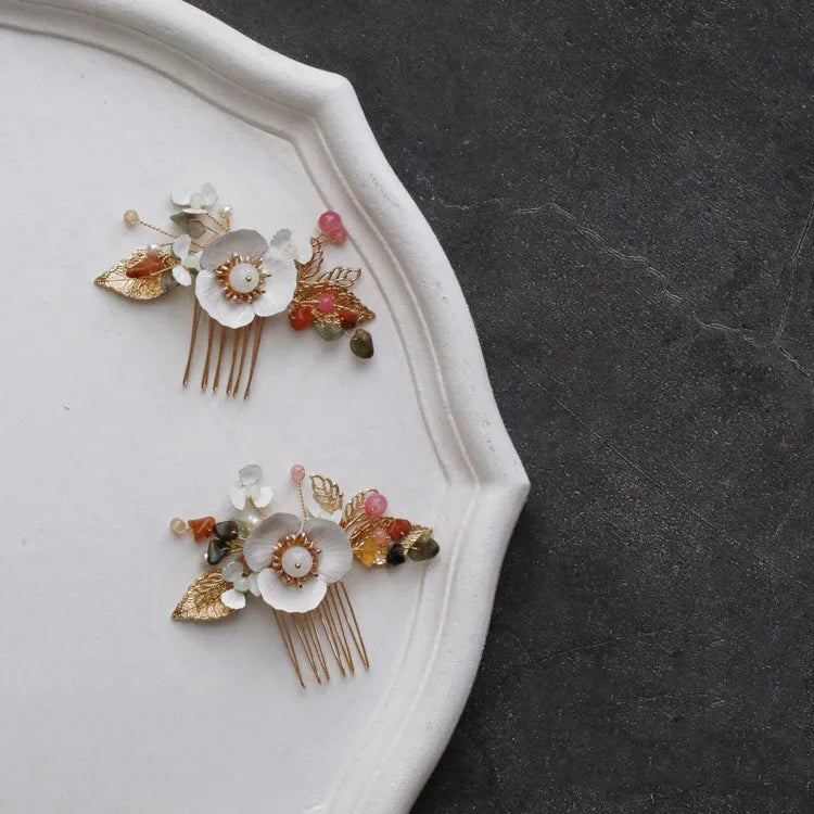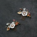 White Flower Hairpins Gold Color Headpieces Hair Combs Clips Pins For Brides Women Headdress Wedding Accessories Bridal Jewelry
