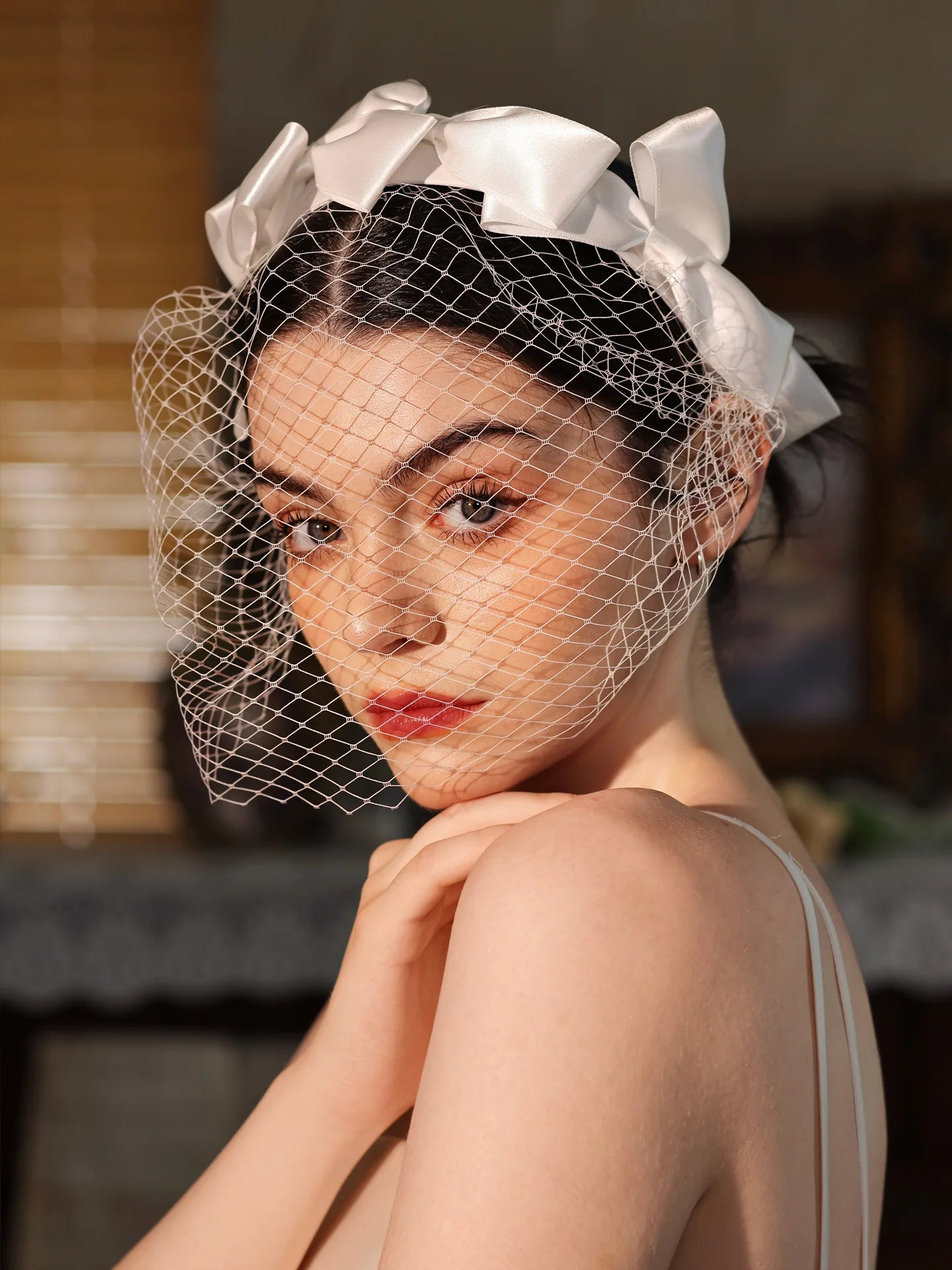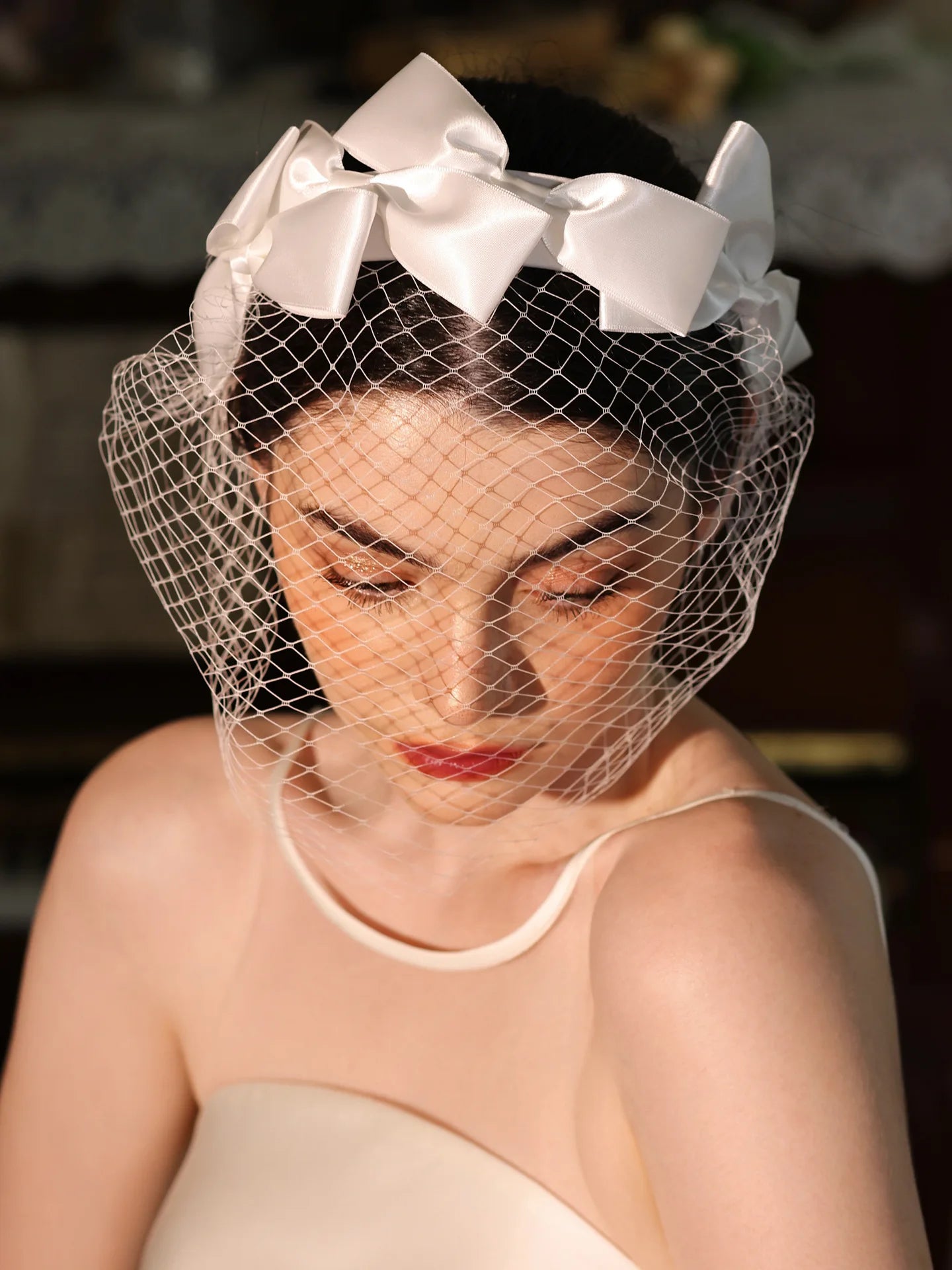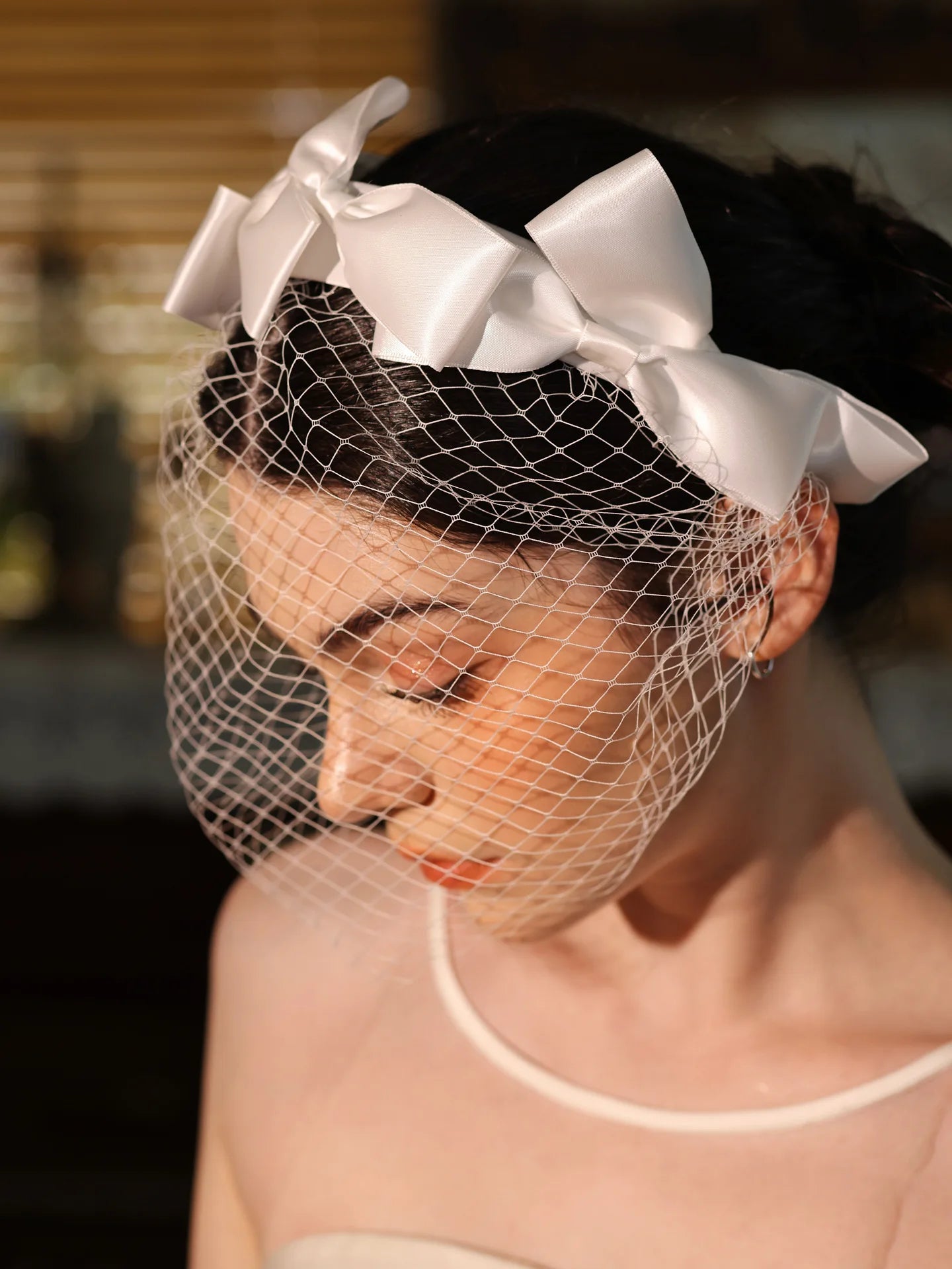 White Hairband Headband Face Veil Headpiece Headdress Bride Women Party Dinner Headwear Bridal Jewelry Wedding Hair Accessories
