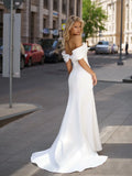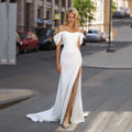 White Wedding Dresses Mermaid Bridal Dress vestidos de novia Sexy Split Off Shoulder Pleated Evening Wedding Gown Customized
