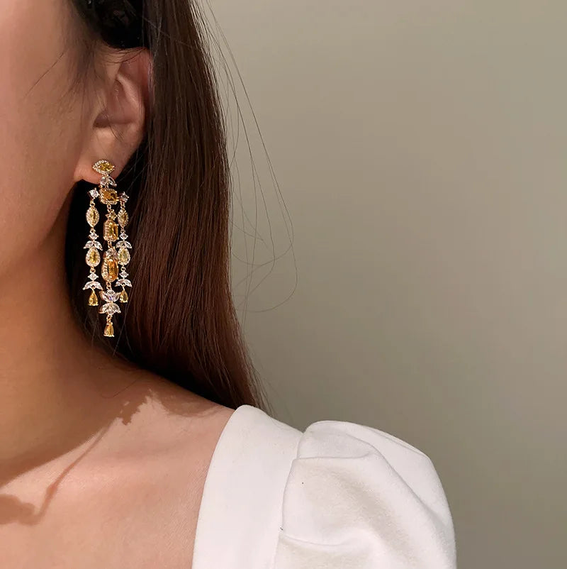 Yellow Green AAA Zircon Bridal Earrings CZ Cubic Zirconia Wedding Earring For Brides Accessories Women Gift Dinner Party Jewelry
